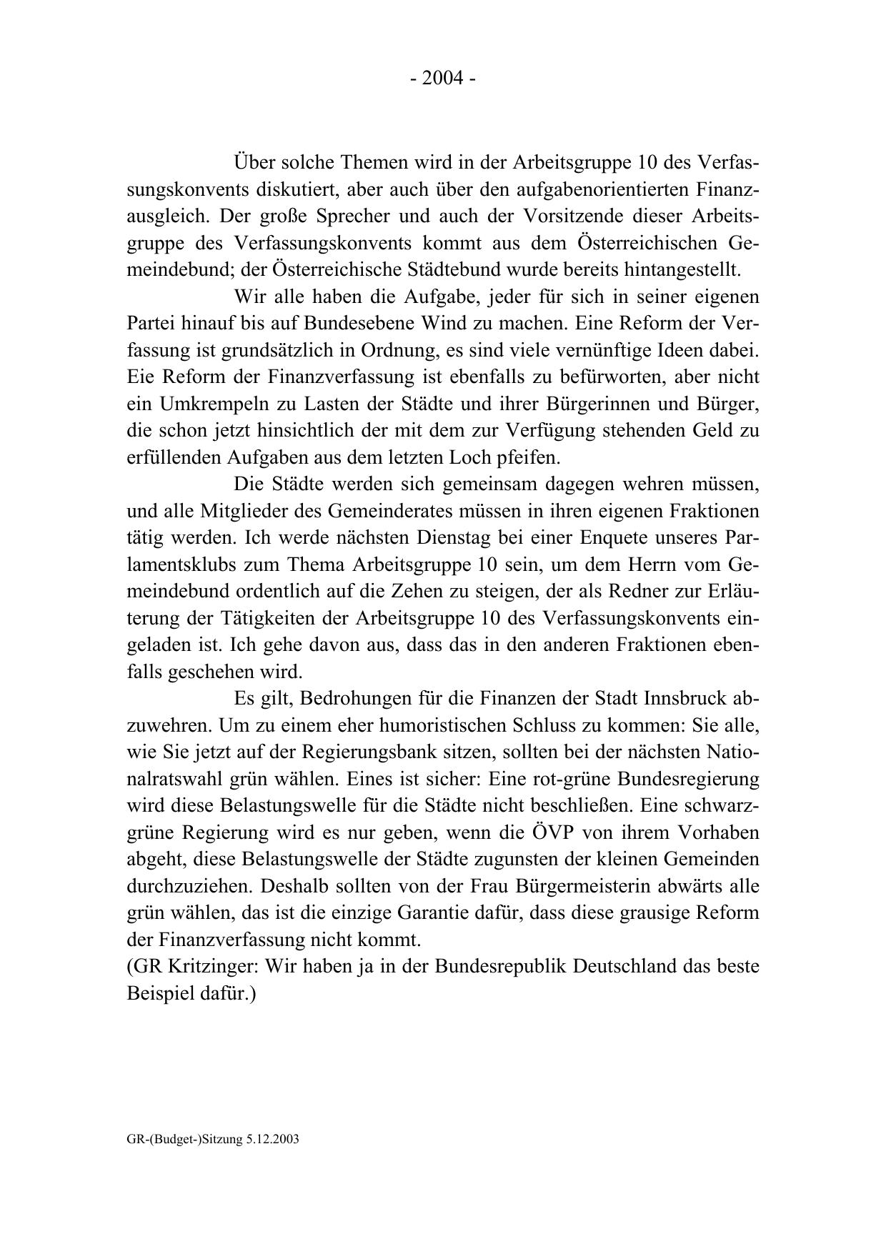 Es gilt, Bedrohungen für die Finanzen der Stadt Innsbruck abzuwehren. Um zu einem eher humoristischen Schluss zu kommen: Sie alle,