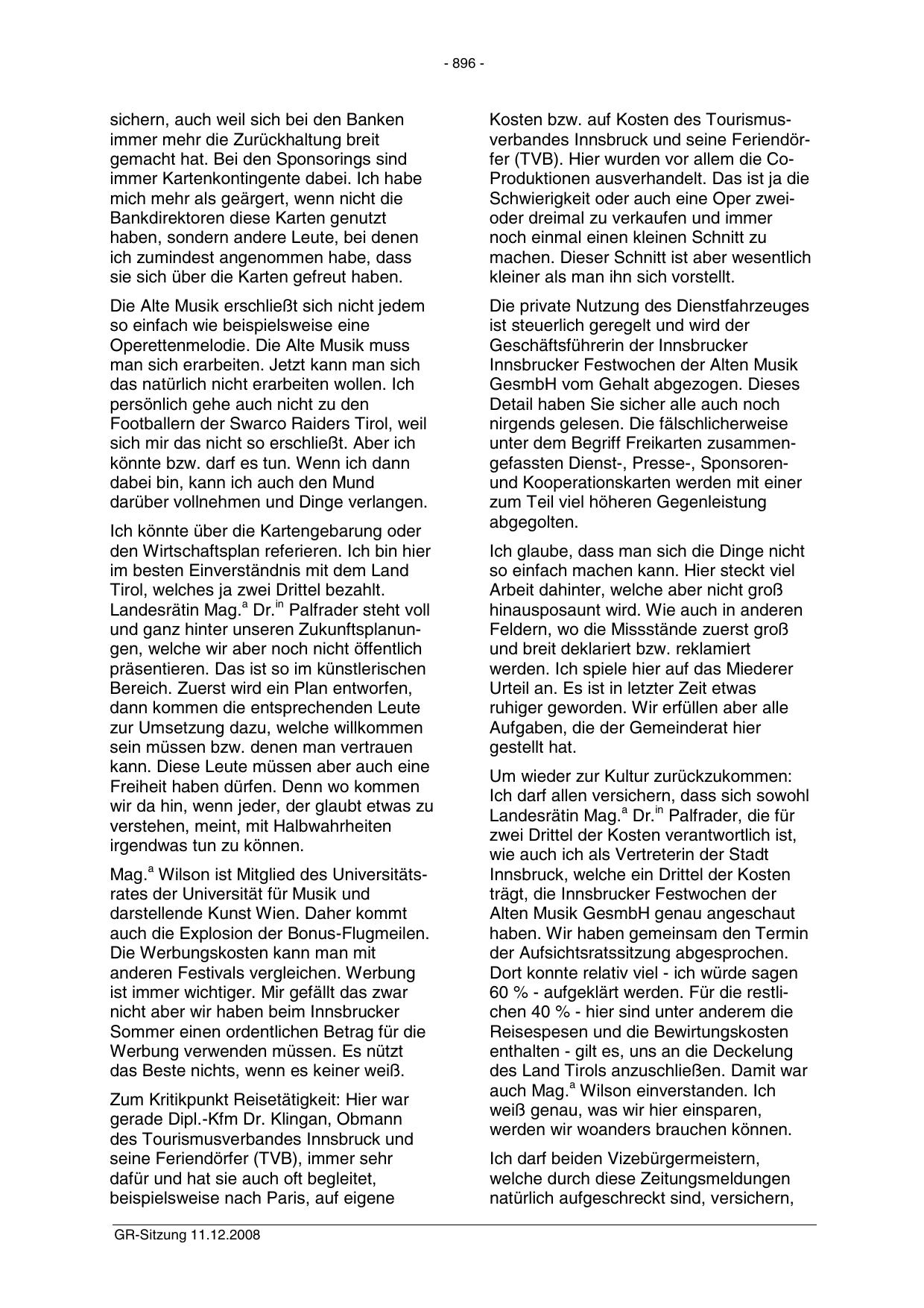 Kosten bzw. auf Kosten des Tourismusverbandes Innsbruck und seine Feriendörfer (TVB). Hier wurden vor allem die CoProduktionen ausverhandelt. Das ist ja die