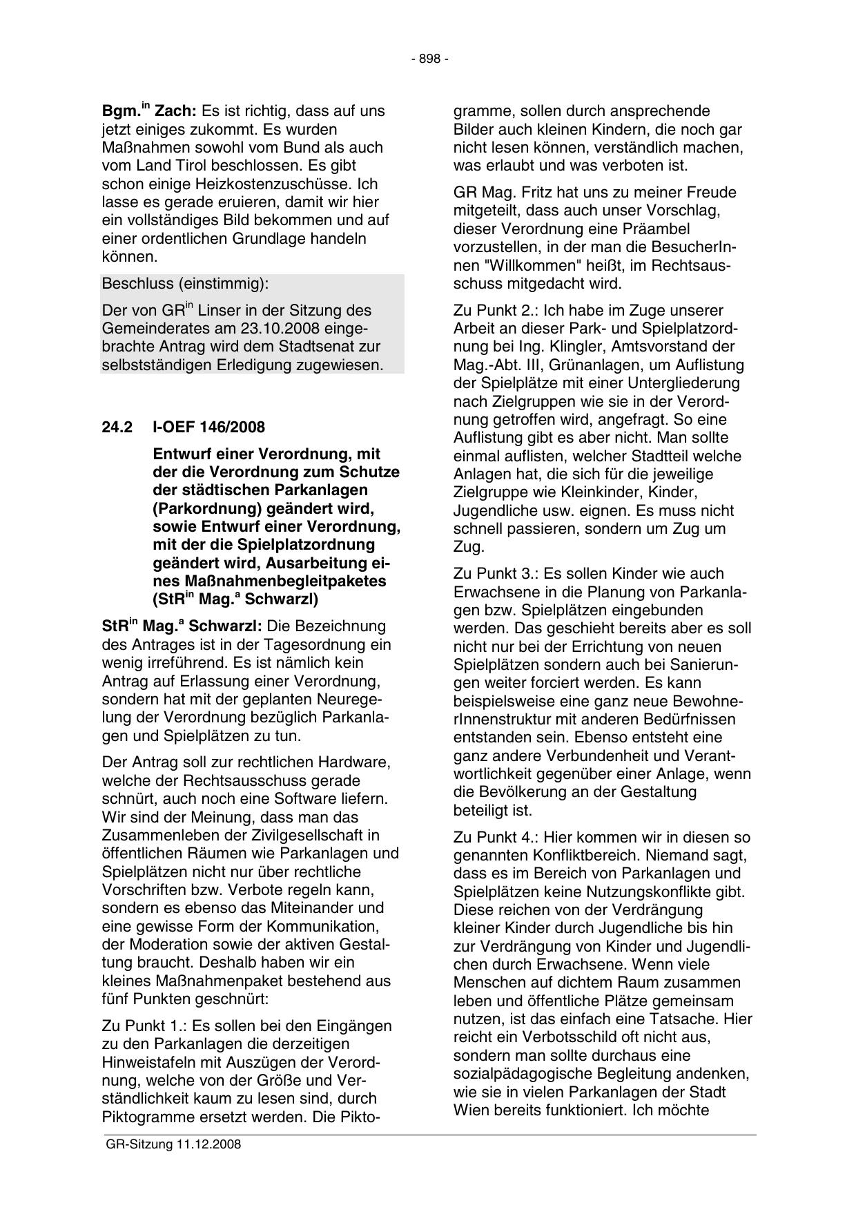 Der von GRin Linser in der Sitzung des