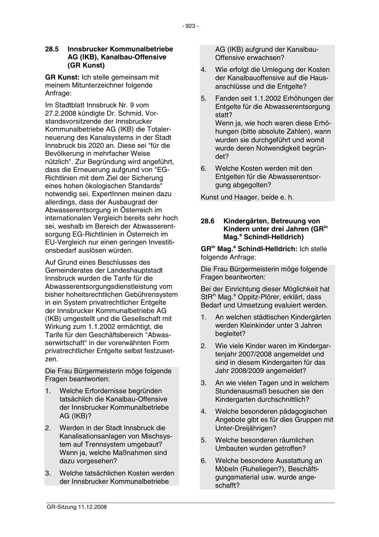 27.2.2008 kündigte Dr. Schmid, Vorstandsvorsitzende der Innsbrucker