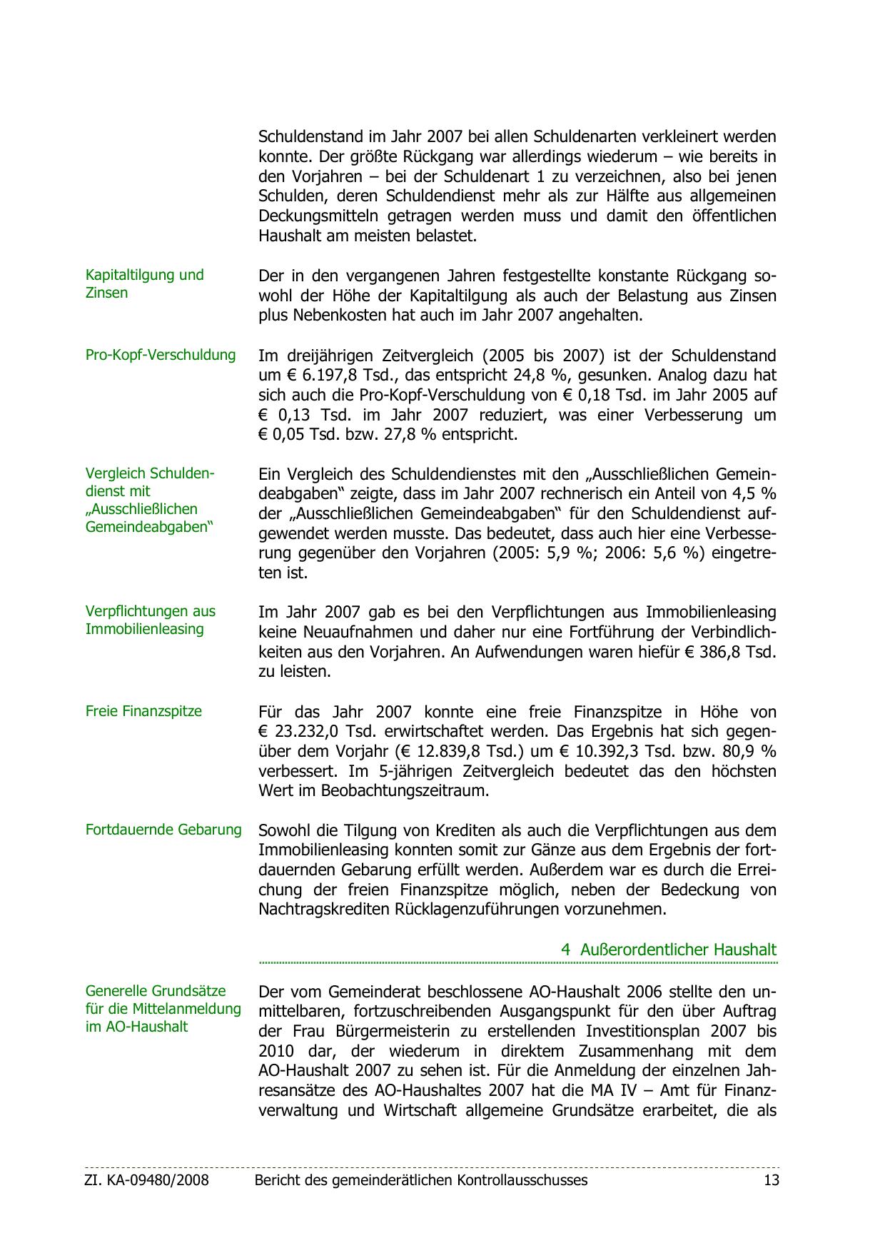 der „Ausschließlichen Gemeindeabgaben“ für den Schuldendienst aufgewendet werden musste. Das bedeutet, dass auch hier eine Verbesserung gegenüber den Vorjahren (2005: 5,9 %; 2006: 5,6 %) eingetreten ist.
