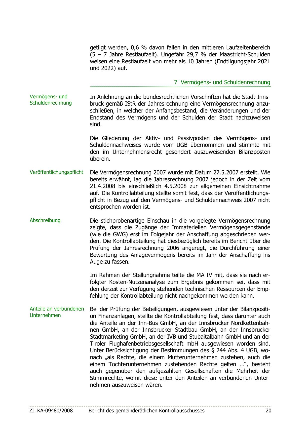 In Anlehnung an die bundesrechtlichen Vorschriften hat die Stadt Innsbruck gemäß IStR der Jahresrechnung eine Vermögensrechnung anzuschließen, in welcher der Anfangsbestand, die Veränderungen und der