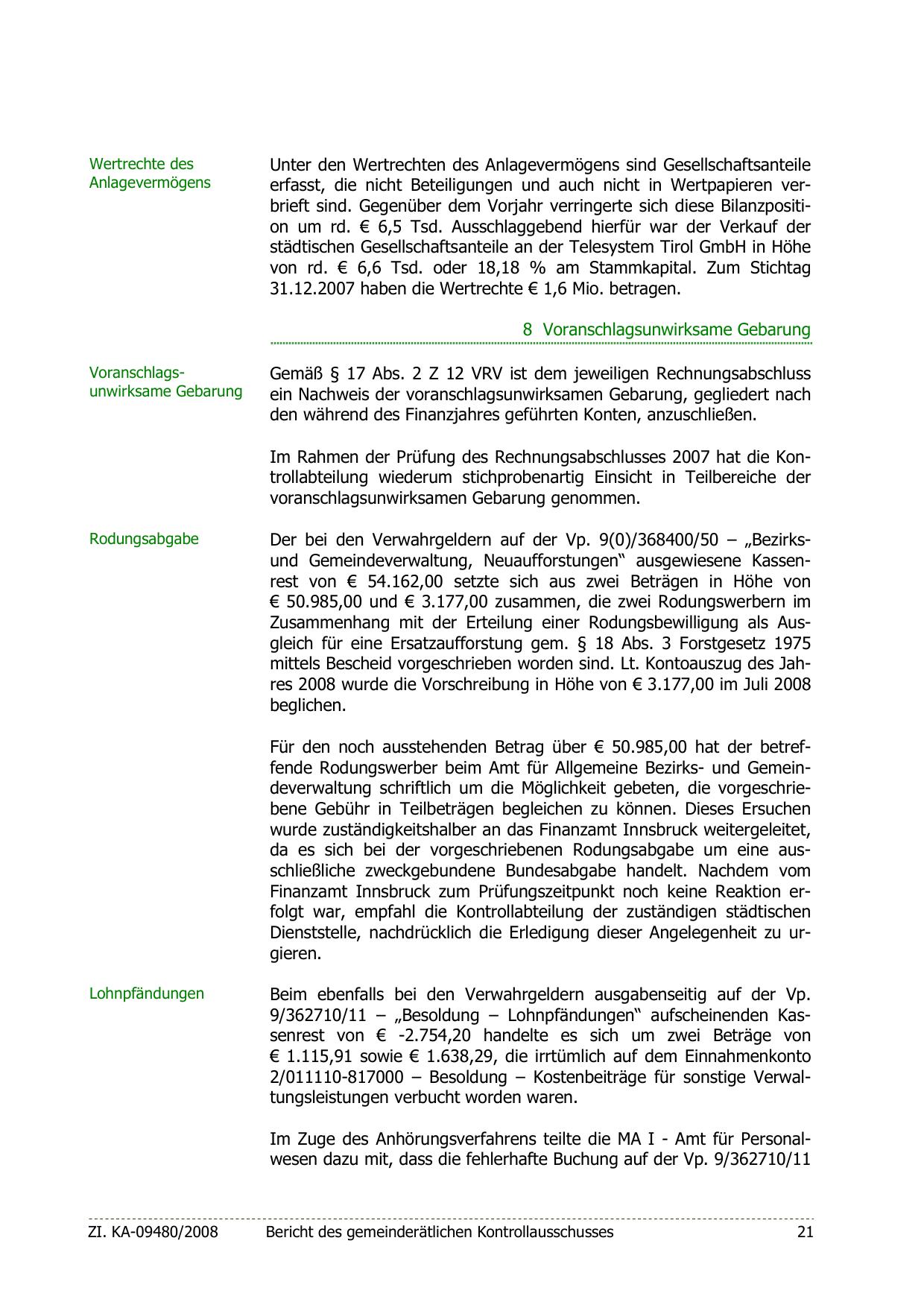 Finanzamt Innsbruck zum Prüfungszeitpunkt noch keine Reaktion erfolgt war, empfahl die Kontrollabteilung der zuständigen städtischen