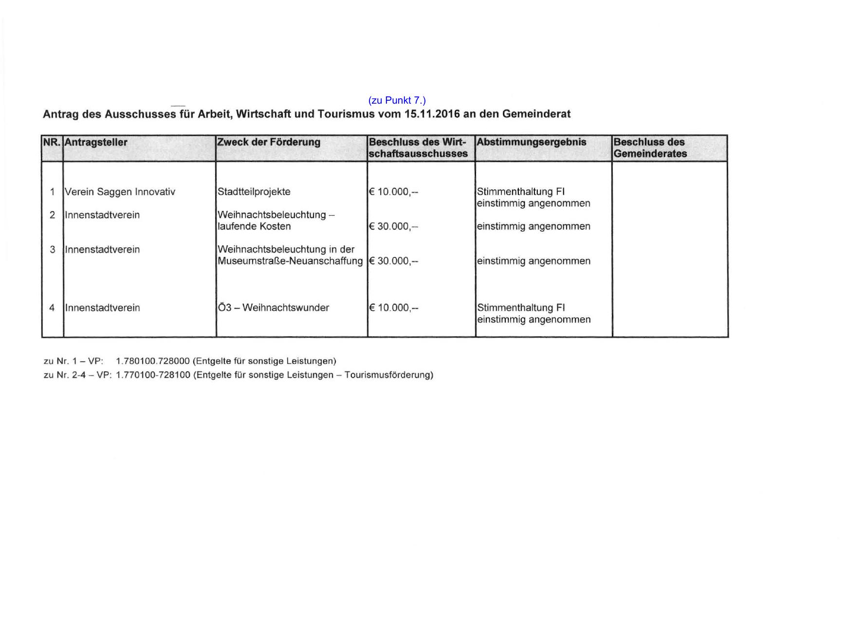 zu Nr. 2-4 - VP : 1.770100-728100 (Entgelte für sonstige Leistungen - Tourismusförderung)