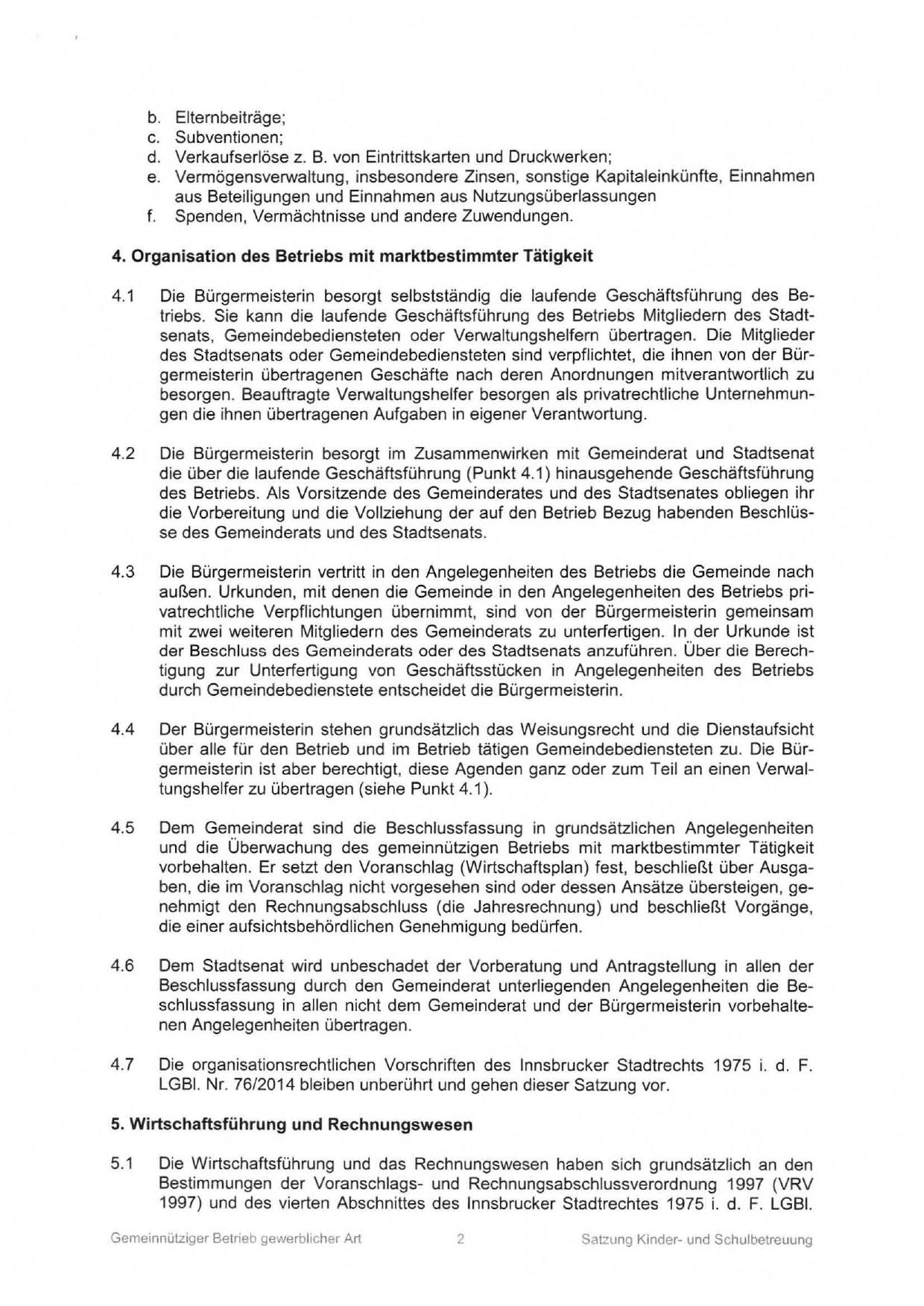 1997) und des vierten Abschnittes des Innsbrucker Stadtrechtes 1975 i. d. F. LGBI.