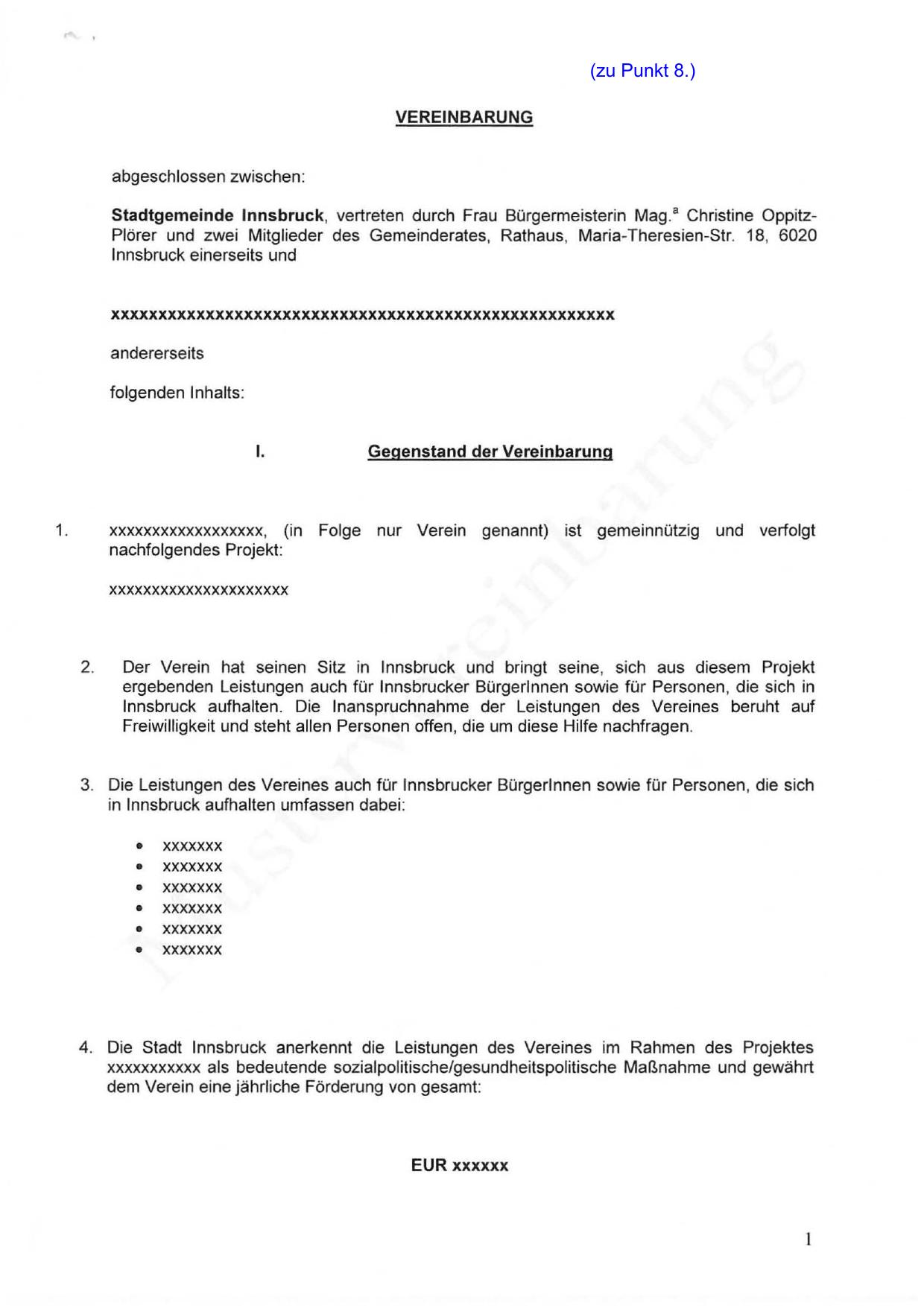 4. Die Stadt Innsbruck anerkennt die Leistungen des Vereines im Rahmen des Projektes