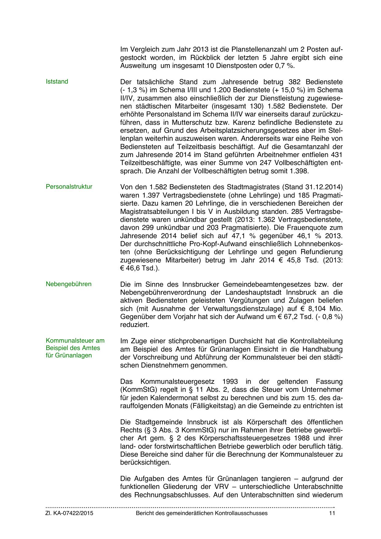 der Vorschreibung und Abführung der Kommunalsteuer bei den städtischen Dienstnehmern genommen.