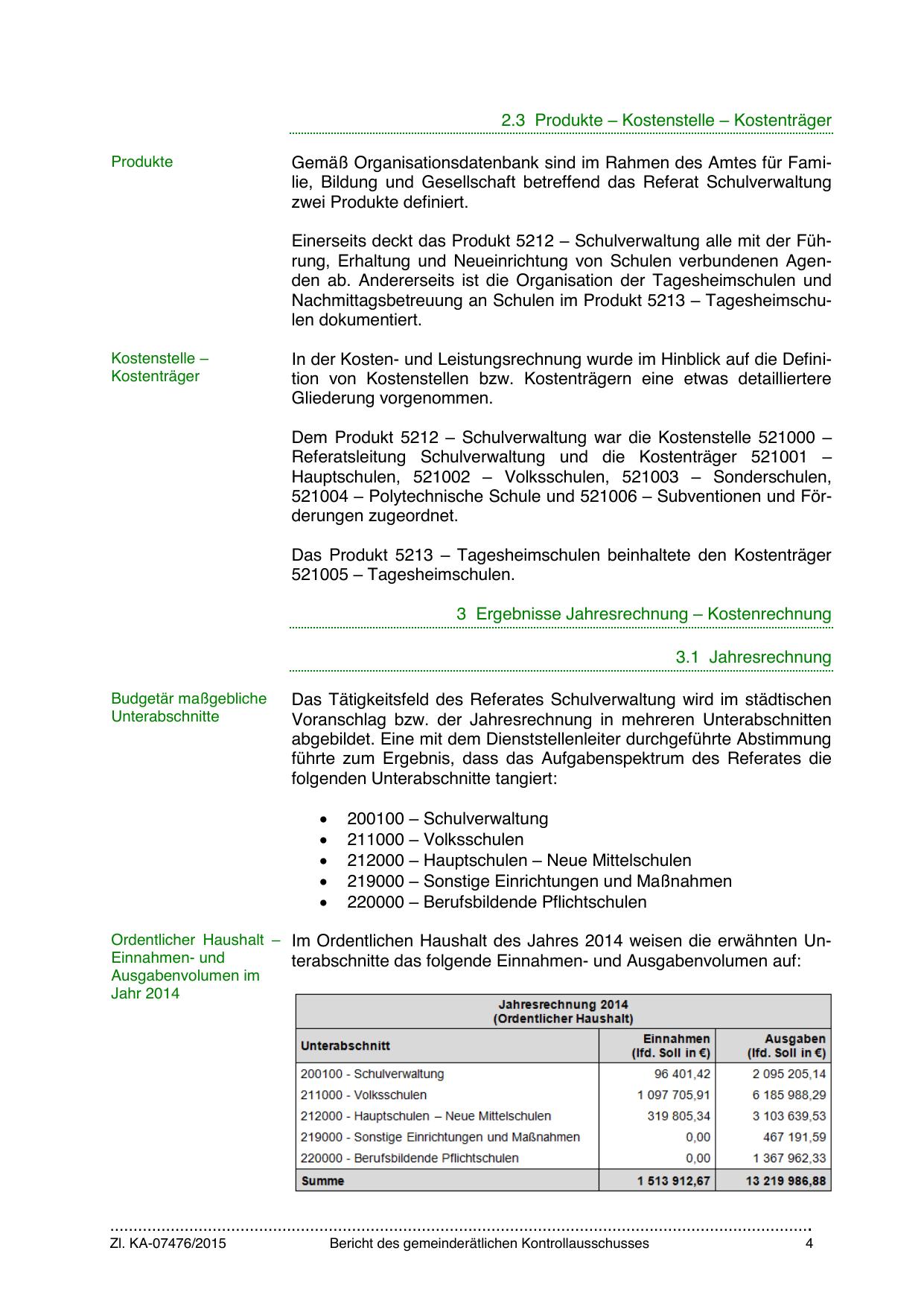 Ordentlicher Haushalt – Im Ordentlichen Haushalt des Jahres 2014 weisen die erwähnten UnEinnahmen- und