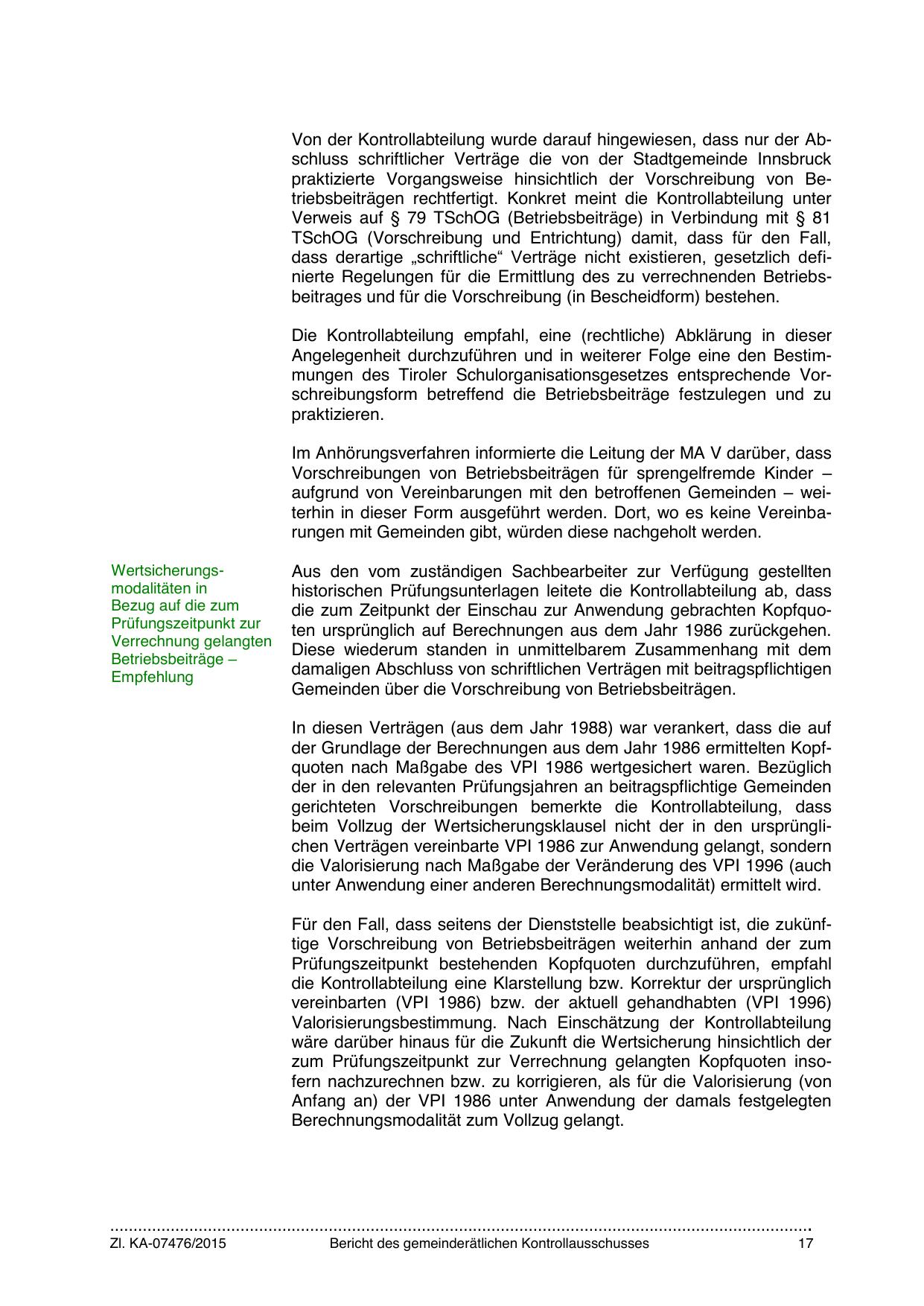 Von der Kontrollabteilung wurde darauf hingewiesen, dass nur der Abschluss schriftlicher Verträge die von der Stadtgemeinde Innsbruck