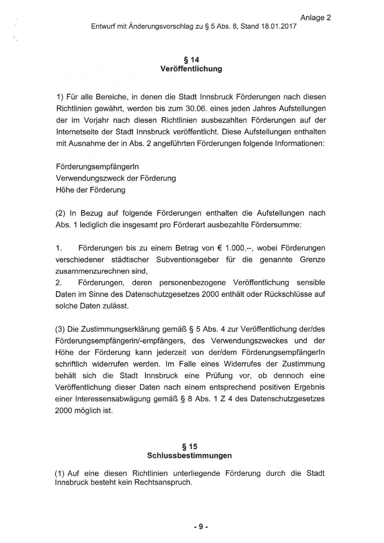 1) Für alle Bereiche, in denen die Stadt Innsbruck Förderungen nach diesen