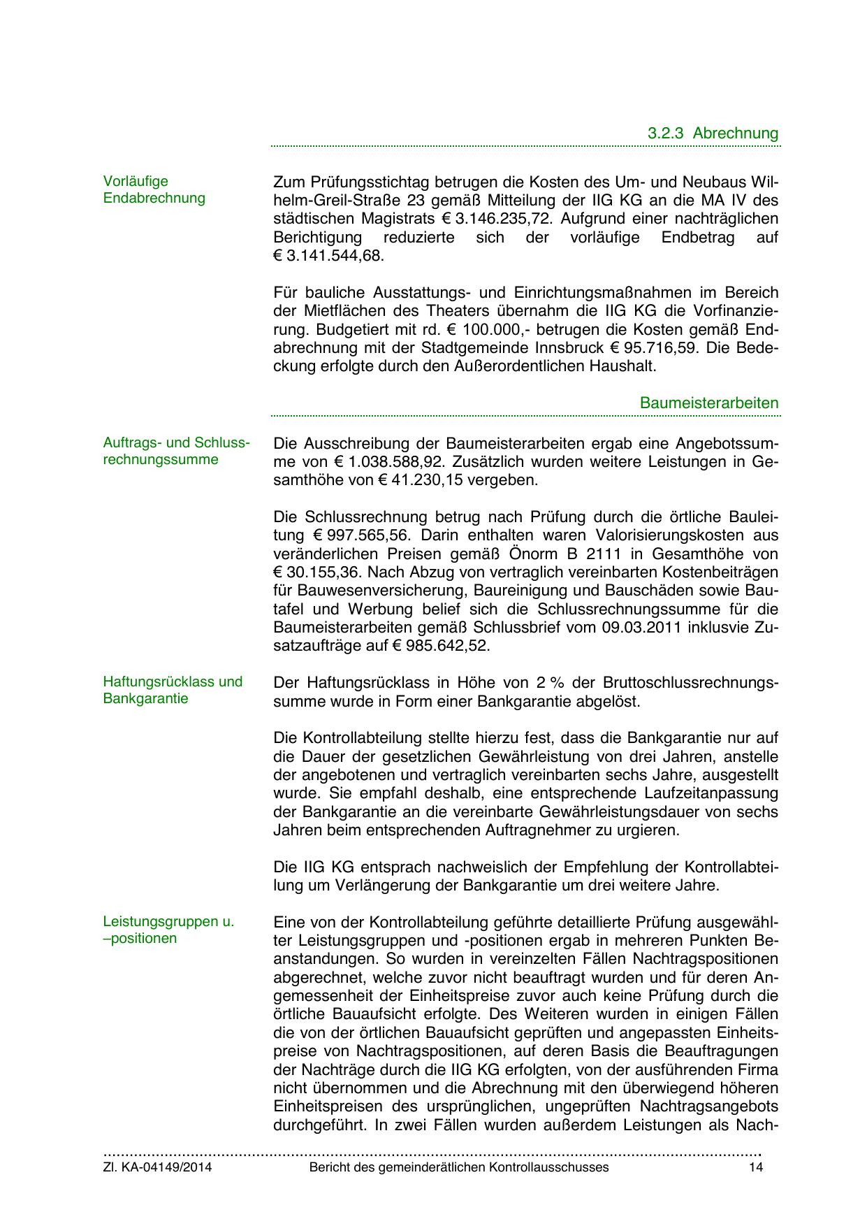 Die Schlussrechnung betrug nach Prüfung durch die örtliche Bauleitung € 997.565,56. Darin enthalten waren Valorisierungskosten aus