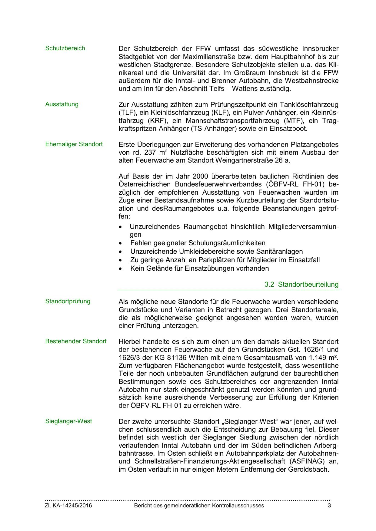 westlichen Stadtgrenze. Besondere Schutzobjekte stellen u.a. das Klinikareal und die Universität dar. Im Großraum Innsbruck ist die FFW