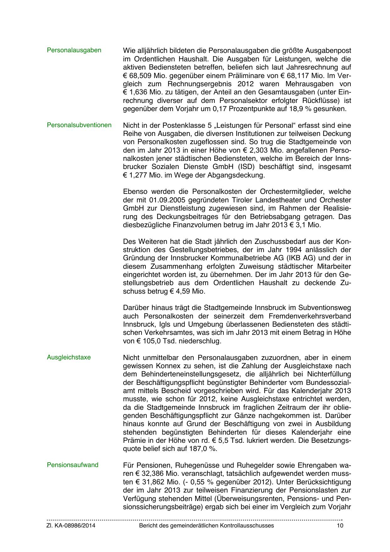 € 68,509 Mio. gegenüber einem Präliminare von € 68,117 Mio. Im Vergleich zum Rechnungsergebnis 2012 waren Mehrausgaben von