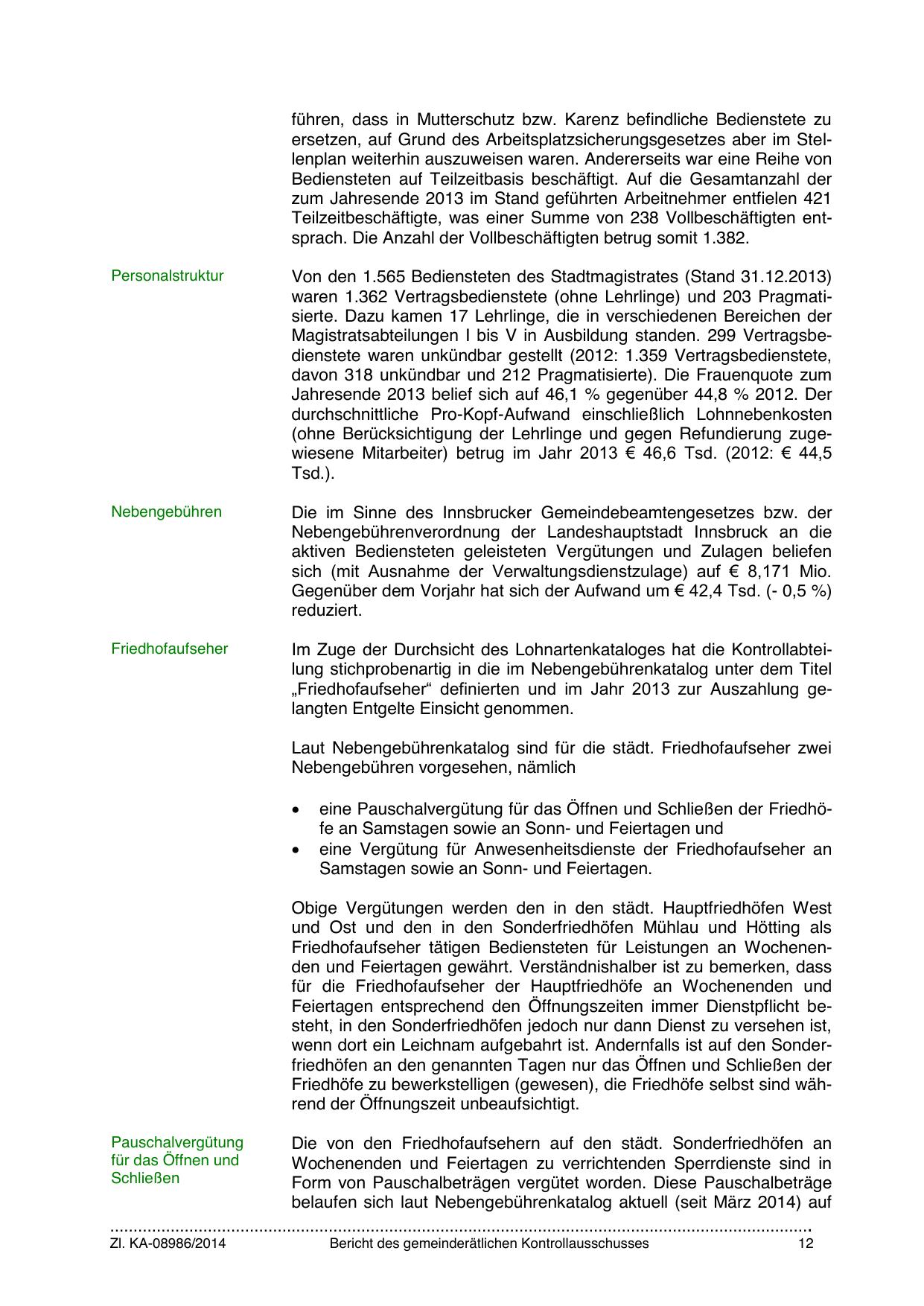 „Friedhofaufseher“ definierten und im Jahr 2013 zur Auszahlung gelangten Entgelte Einsicht genommen.