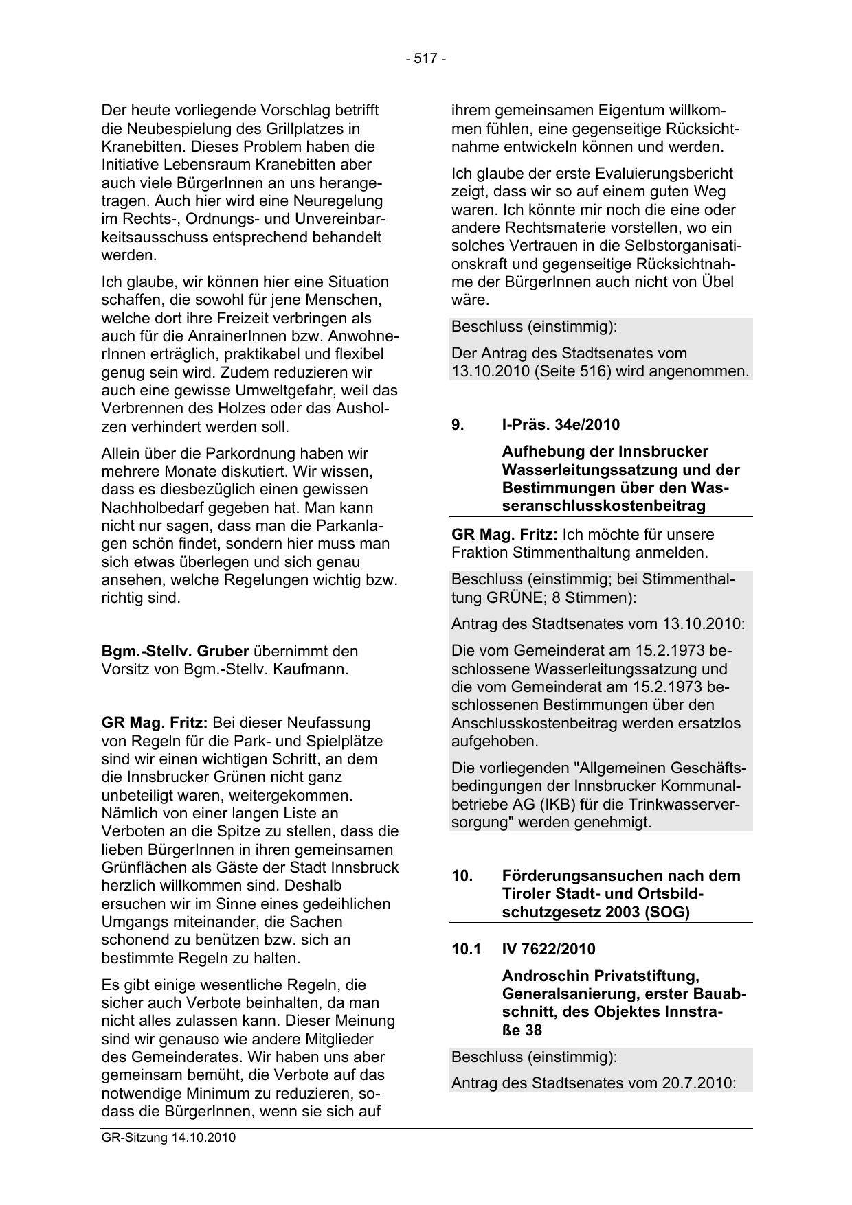 Beschluss (einstimmig; bei Stimmenthaltung GRÜNE; 8 Stimmen):