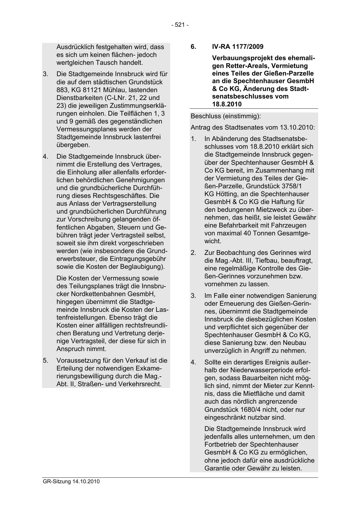 die Stadtgemeinde Innsbruck gegenüber der Spechtenhauser GesmbH &