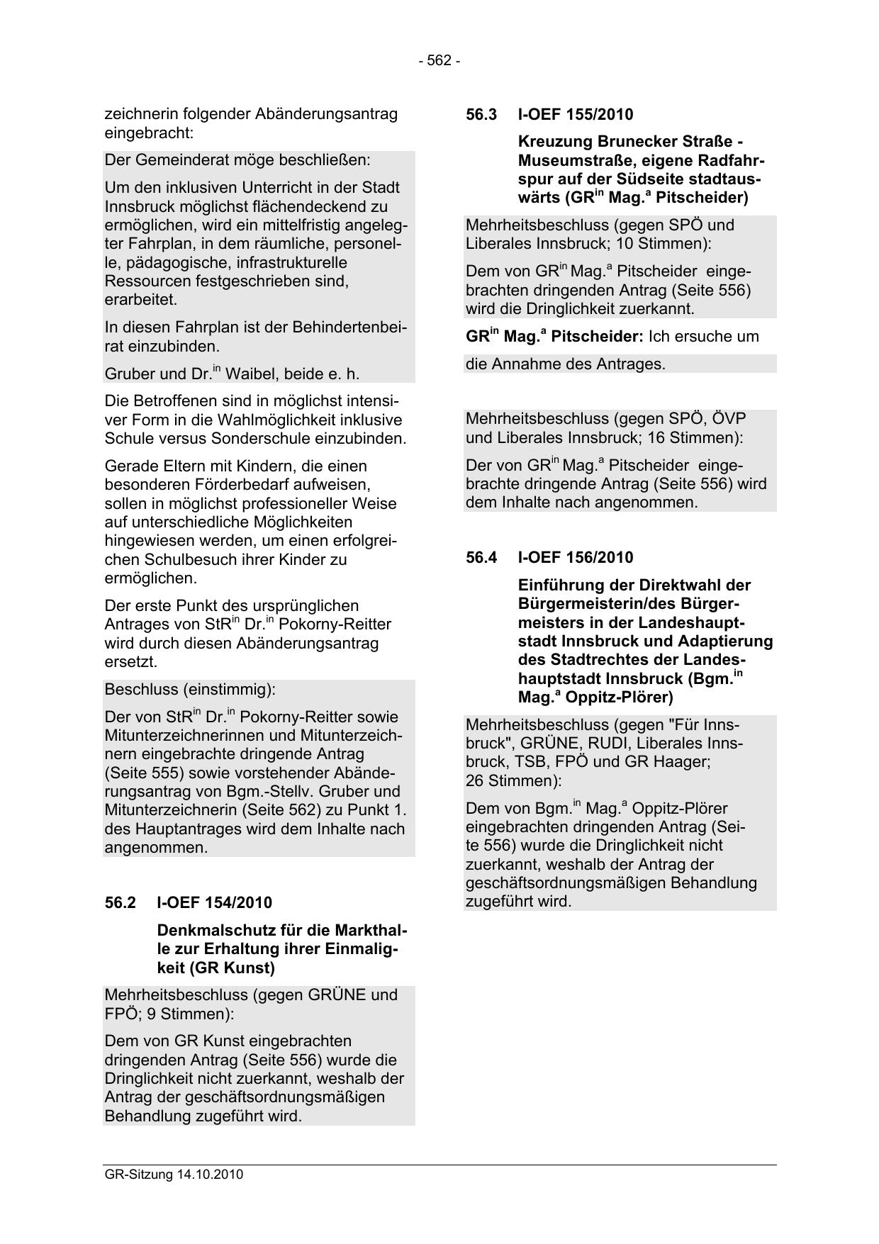 Dem von GRin Mag.a Pitscheider eingebrachten dringenden Antrag (Seite 556)