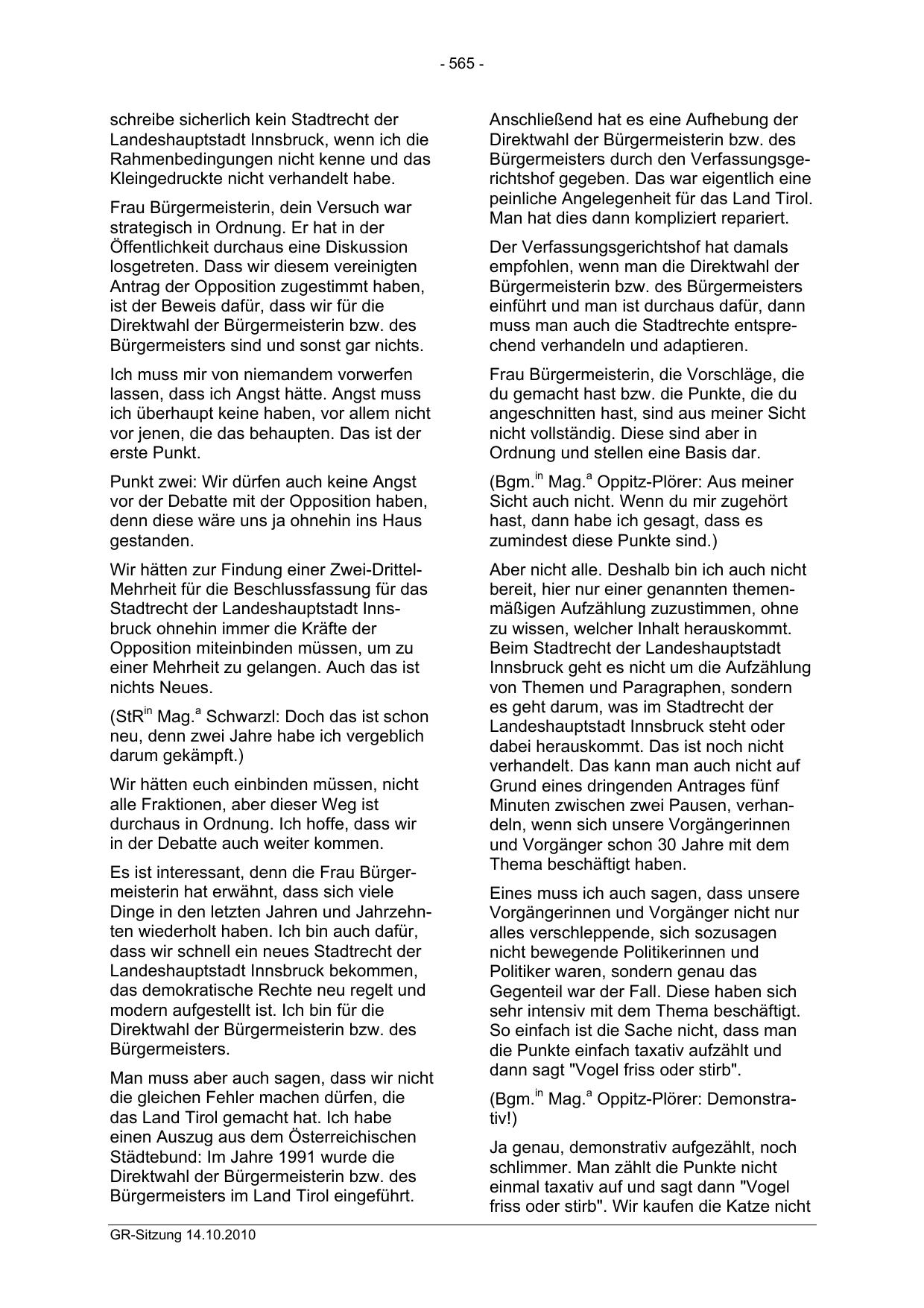 (Bgm.in Mag.a Oppitz-Plörer: Aus meiner