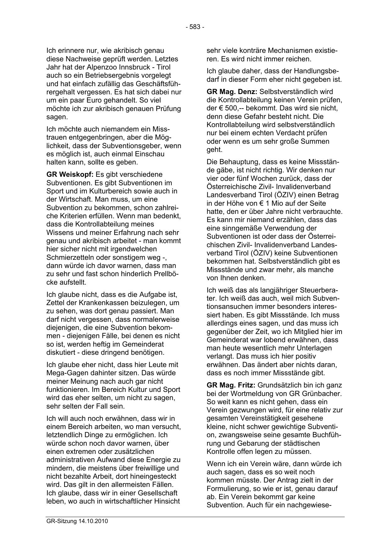 kleine, nicht schwer gewichtige Subvention, zwangsweise seine gesamte Buchführung und Gebarung der städtischen