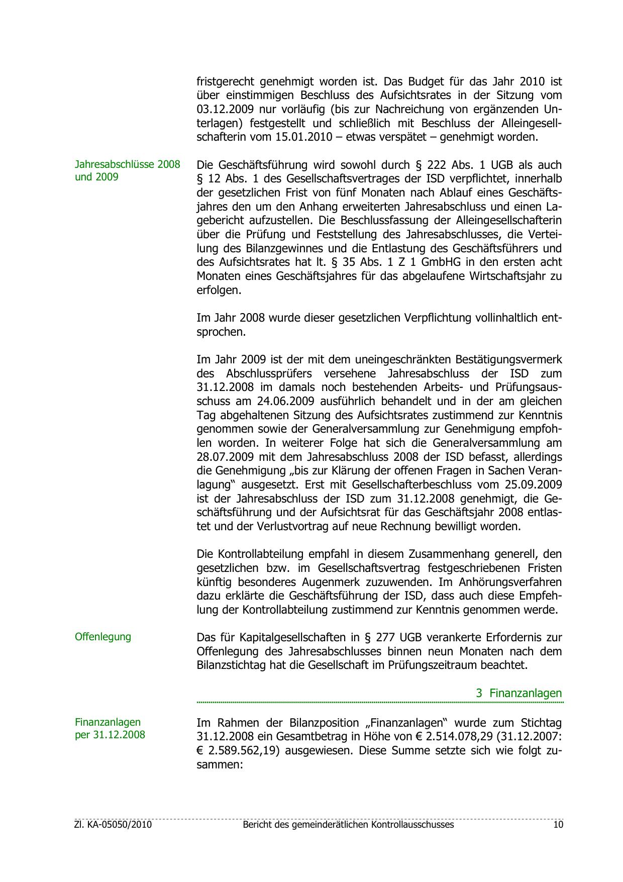 28.07.2009 mit dem Jahresabschluss 2008 der ISD befasst, allerdings