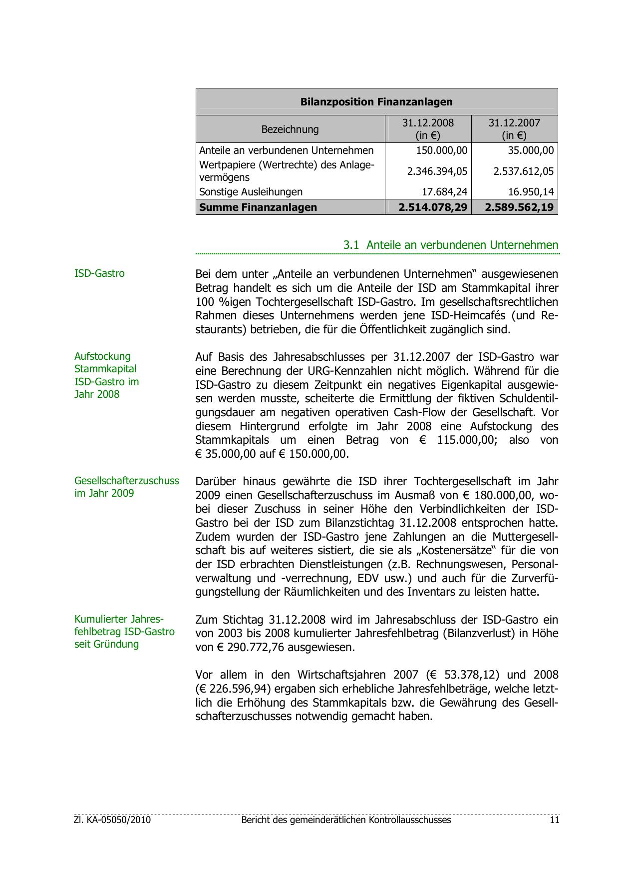 Zum Stichtag 31.12.2008 wird im Jahresabschluss der ISD-Gastro ein