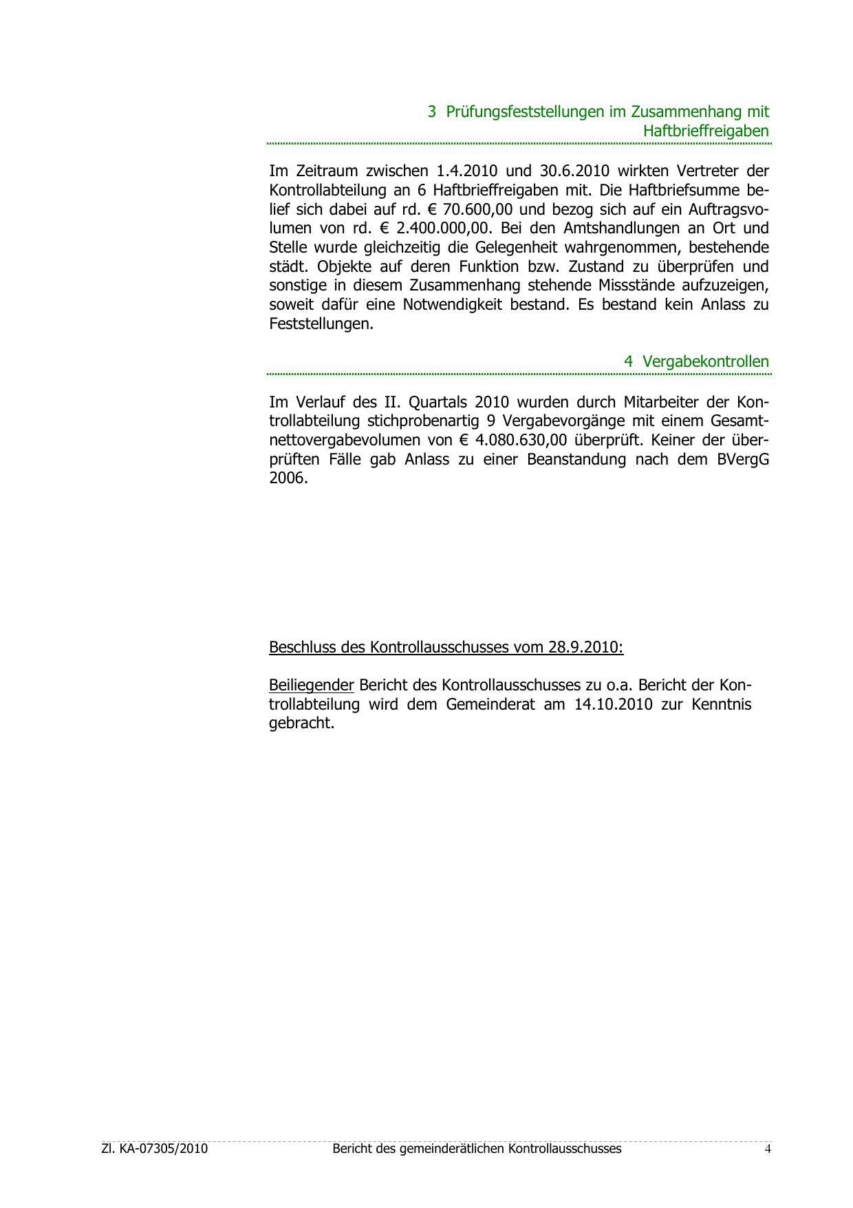 Beschluss des Kontrollausschusses vom 28.9.2010: