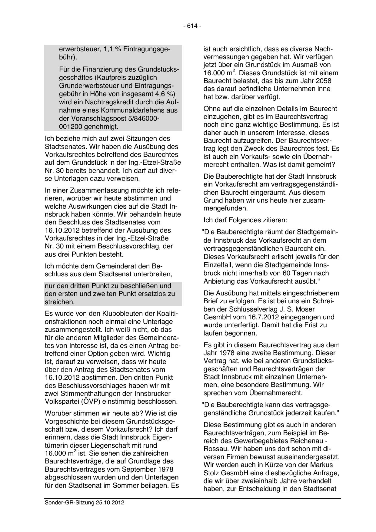 erinnern, dass die Stadt Innsbruck Eigentümerin dieser Liegenschaft mit rund