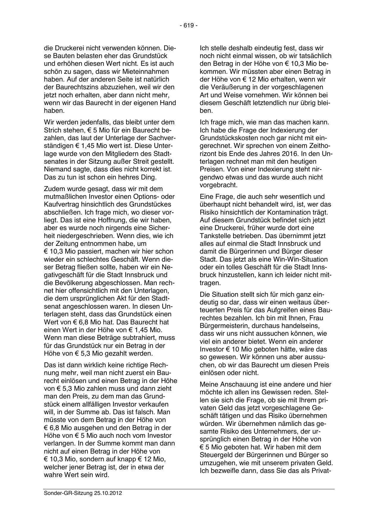 Sonder-GR-Sitzung 25.10.2012