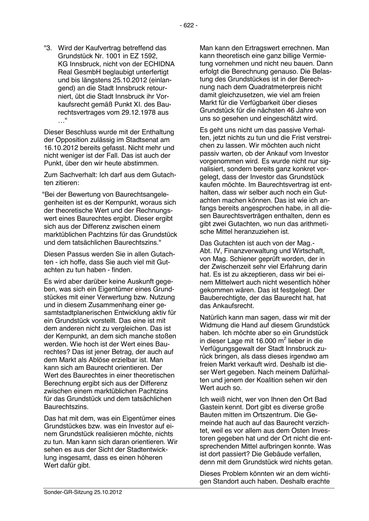 kaufen möchte. Im Baurechtsvertrag ist enthalten, dass wir selber auch noch ein Gutachten machen können. Das ist wie ich anfangs bereits angesprochen habe, in all diesen Baurechtsverträgen enthalten, denn es