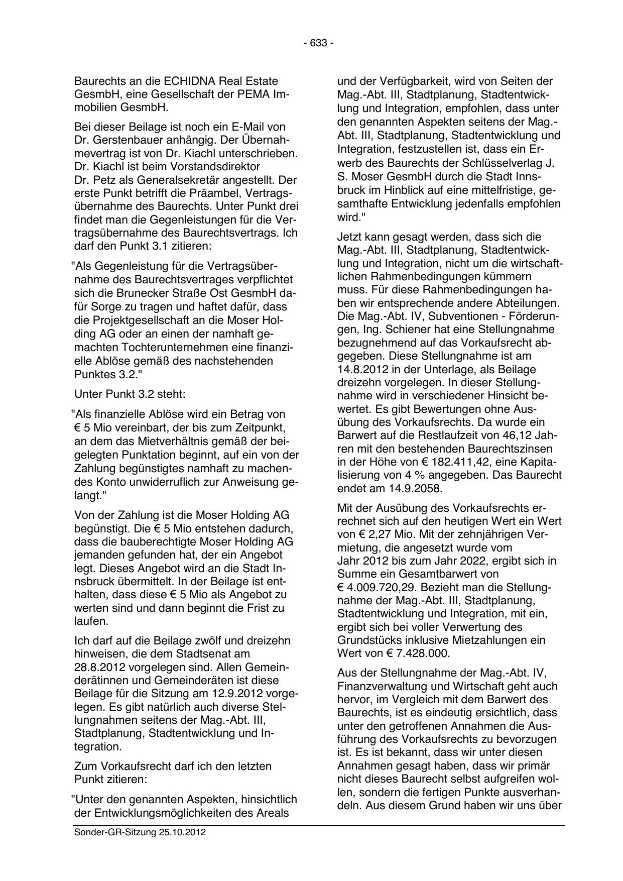 S. Moser GesmbH durch die Stadt Innsbruck im Hinblick auf eine mittelfristige, gesamthafte Entwicklung jedenfalls empfohlen