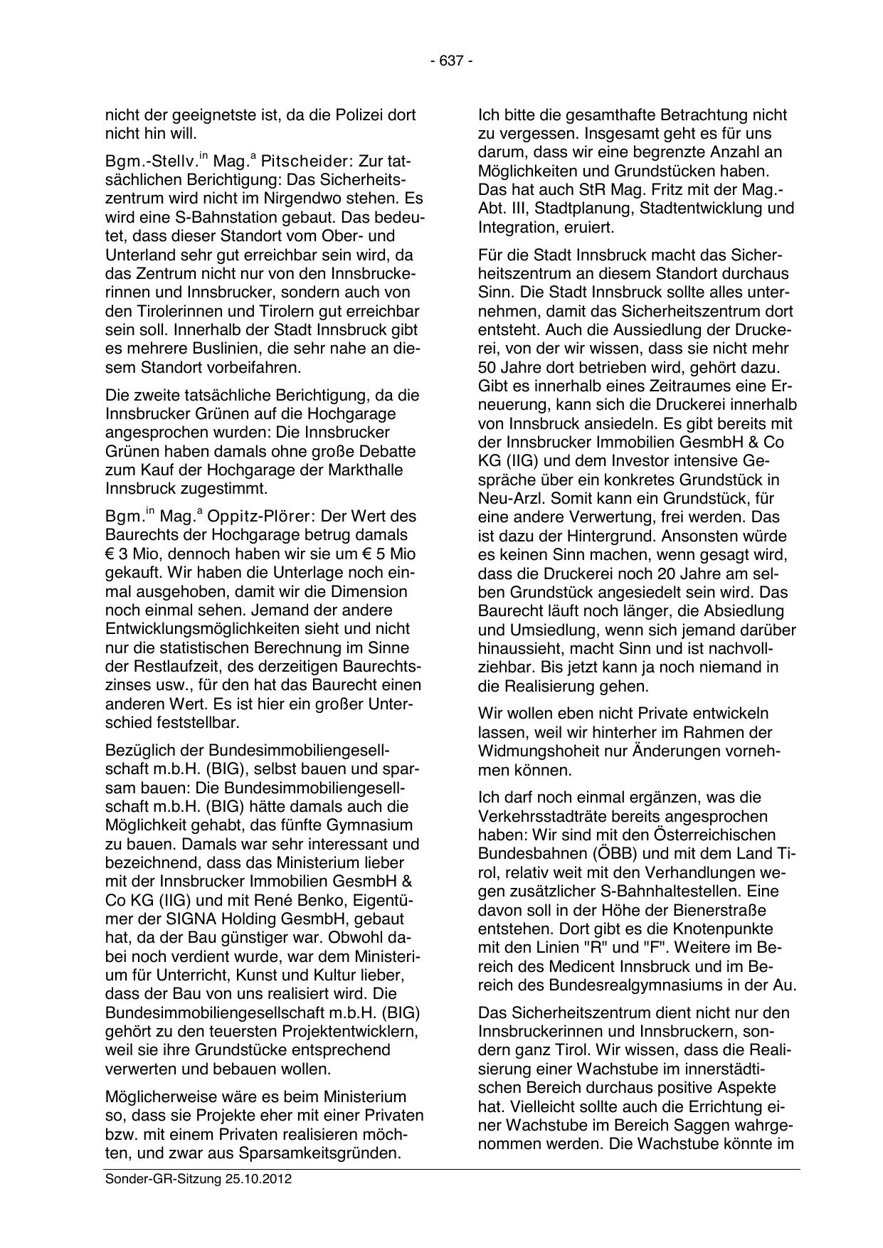 Bgm.-Stellv.in Mag.a Pitscheider: Zur tatsächlichen Berichtigung: Das Sicherheitszentrum wird nicht im Nirgendwo stehen. Es