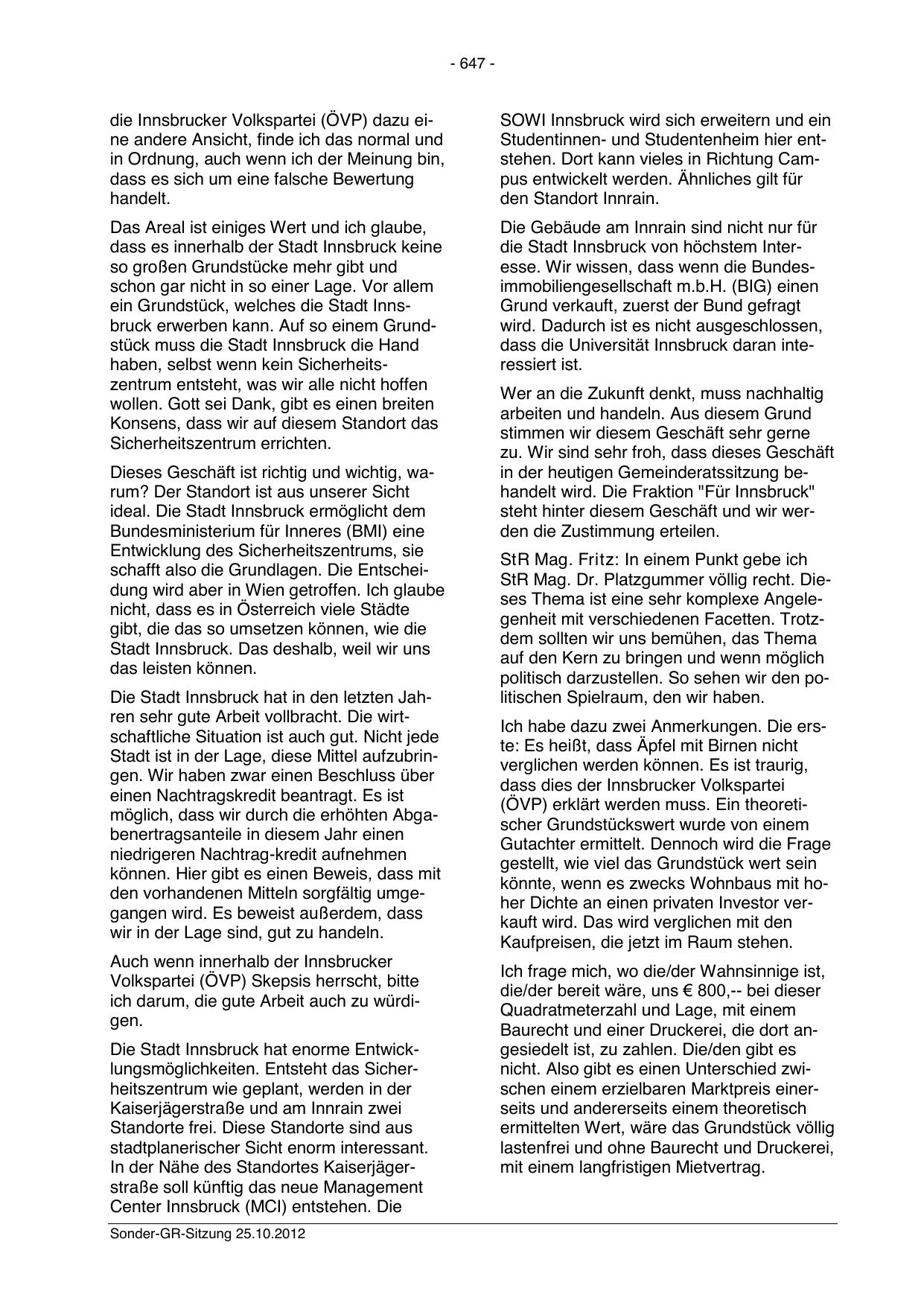 die Innsbrucker Volkspartei (ÖVP) dazu eine andere Ansicht, finde ich das normal und