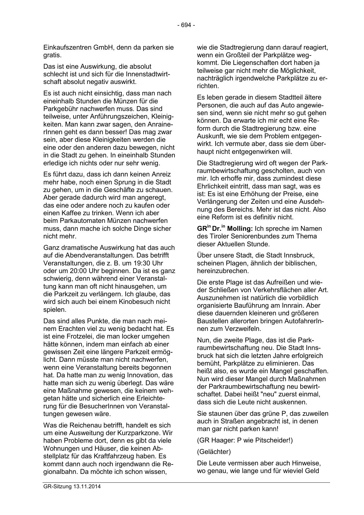 Nun, die zweite Plage, das ist die Parkraumbewirtschaftung neu. Die Stadt Innsbruck hat sich die letzten Jahre erfolgreich