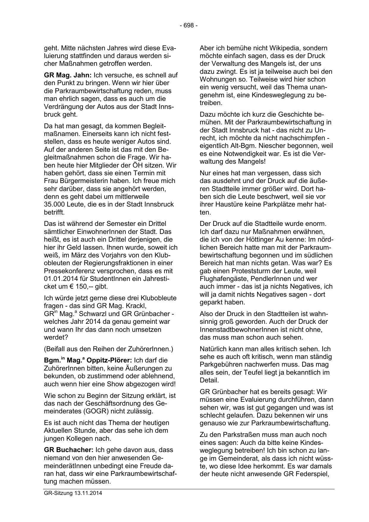 GRin Mag.a Schwarzl und GR Grünbacher welches Jahr 2014 da genau gemeint war