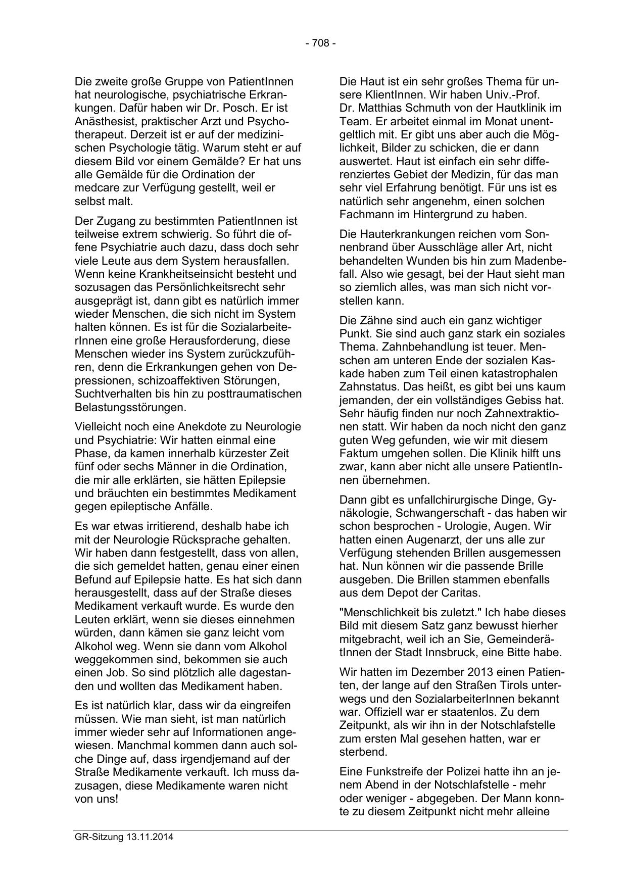 Wir hatten im Dezember 2013 einen Patienten, der lange auf den Straßen Tirols unterwegs und den SozialarbeiterInnen bekannt