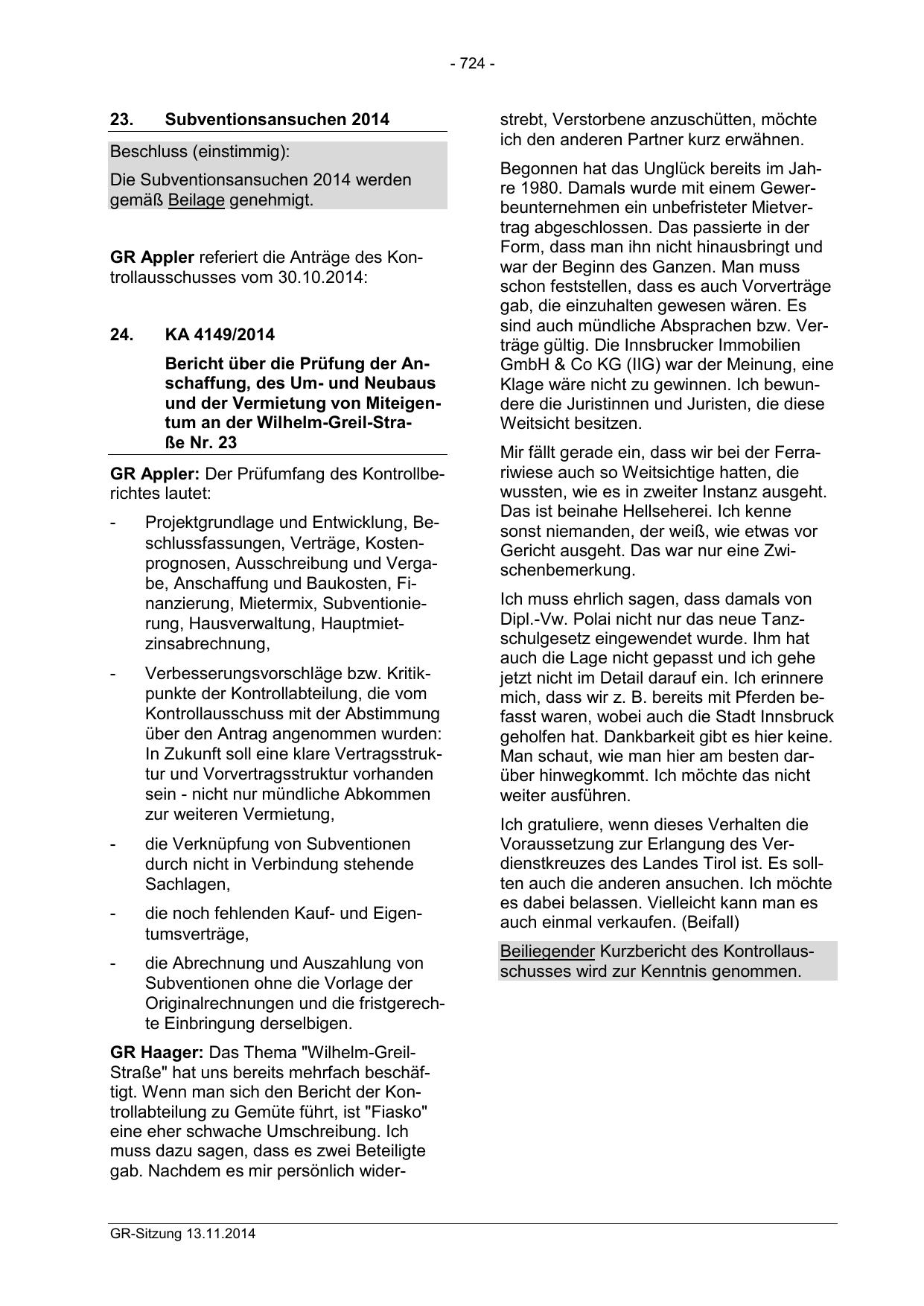 gab. Nachdem es mir persönlich widerGR-Sitzung 13.11.2014