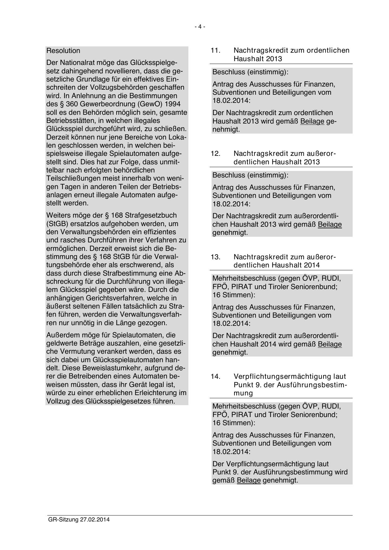 Mehrheitsbeschluss (gegen ÖVP, RUDI,