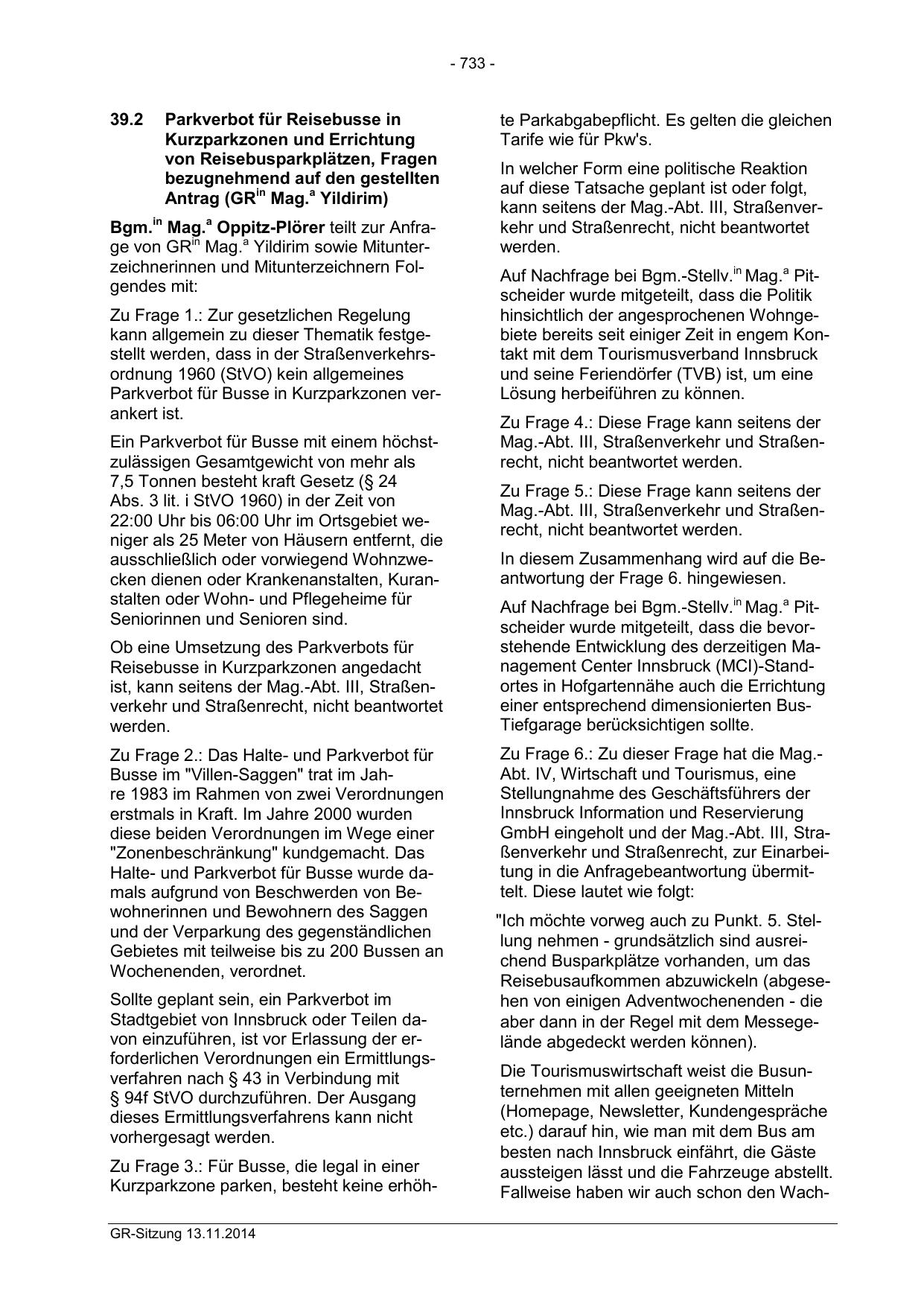 "Ich möchte vorweg auch zu Punkt. 5. Stellung nehmen - grundsätzlich sind ausreichend Busparkplätze vorhanden, um das