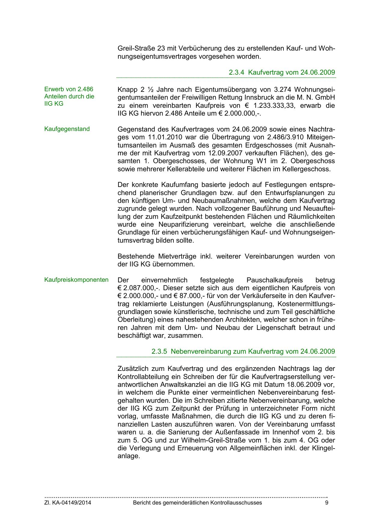 2.3.5 Nebenvereinbarung zum Kaufvertrag vom 24.06.2009