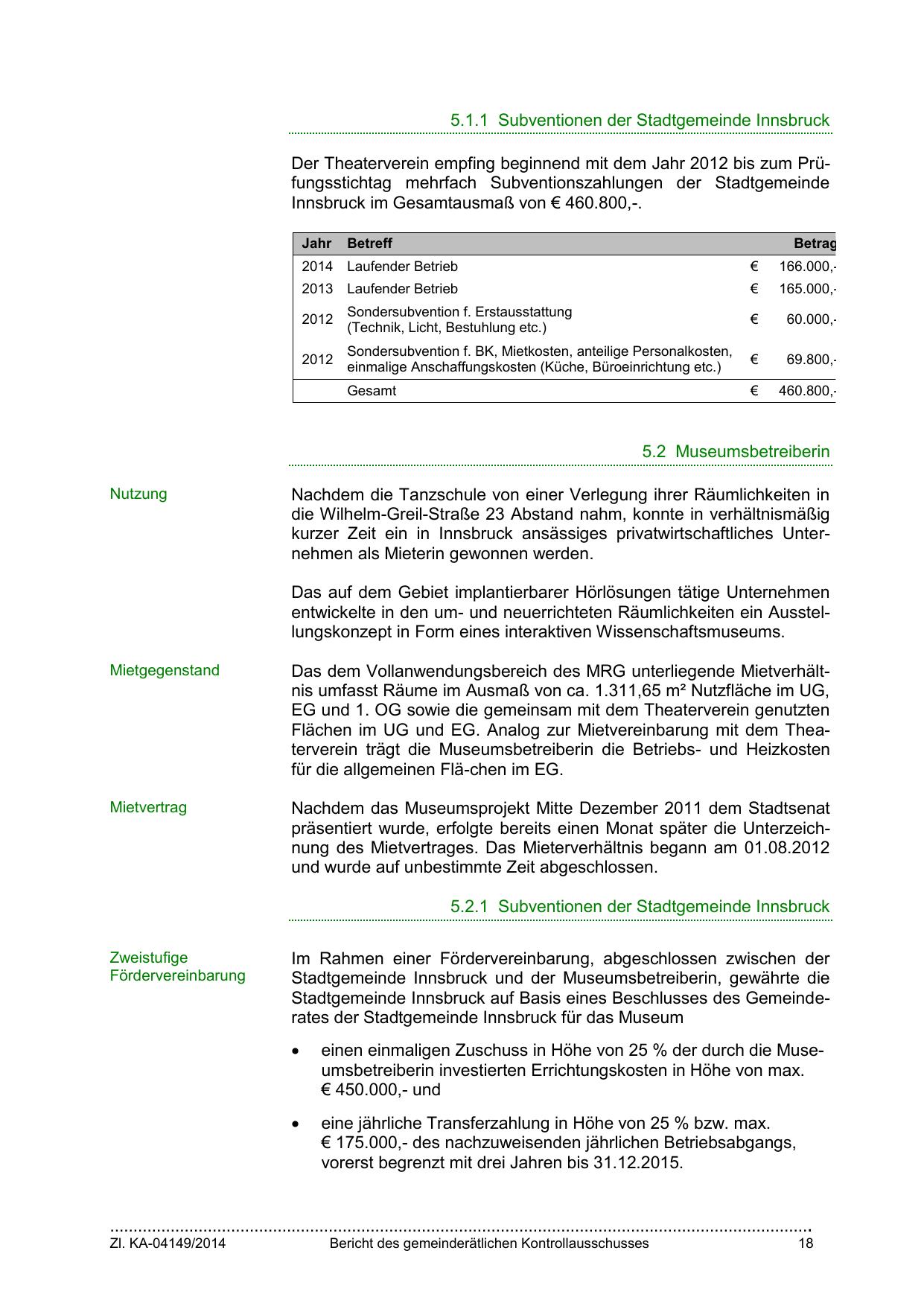 5.1.1 Subventionen der Stadtgemeinde Innsbruck