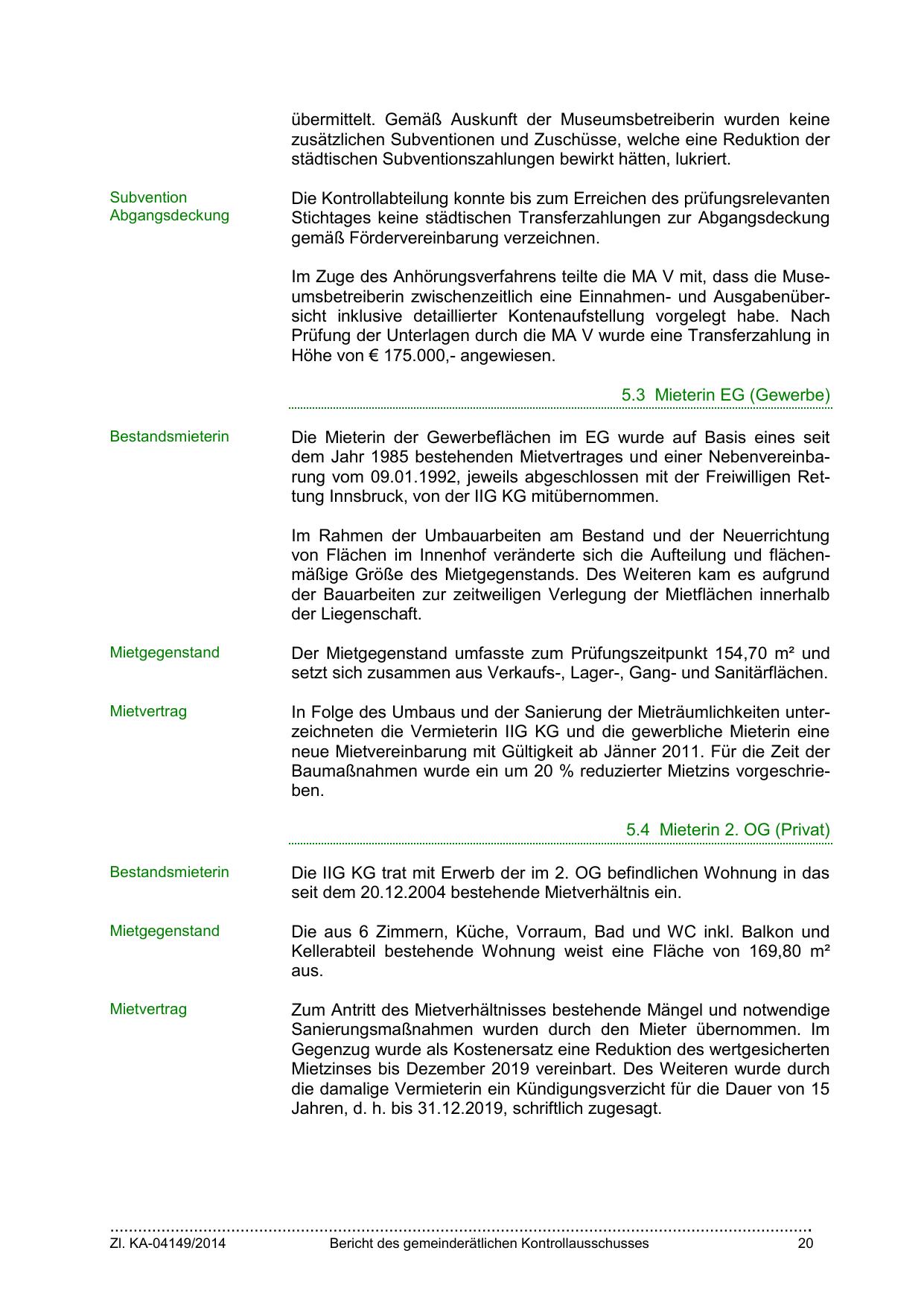 Im Zuge des Anhörungsverfahrens teilte die MA V mit, dass die Museumsbetreiberin zwischenzeitlich eine Einnahmen- und Ausgabenübersicht inklusive detaillierter Kontenaufstellung vorgelegt habe. Nach