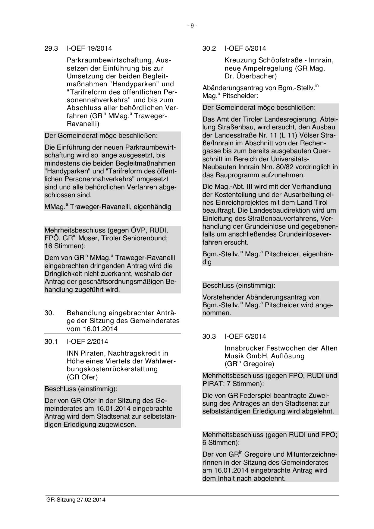 Mehrheitsbeschluss (gegen RUDI und FPÖ;