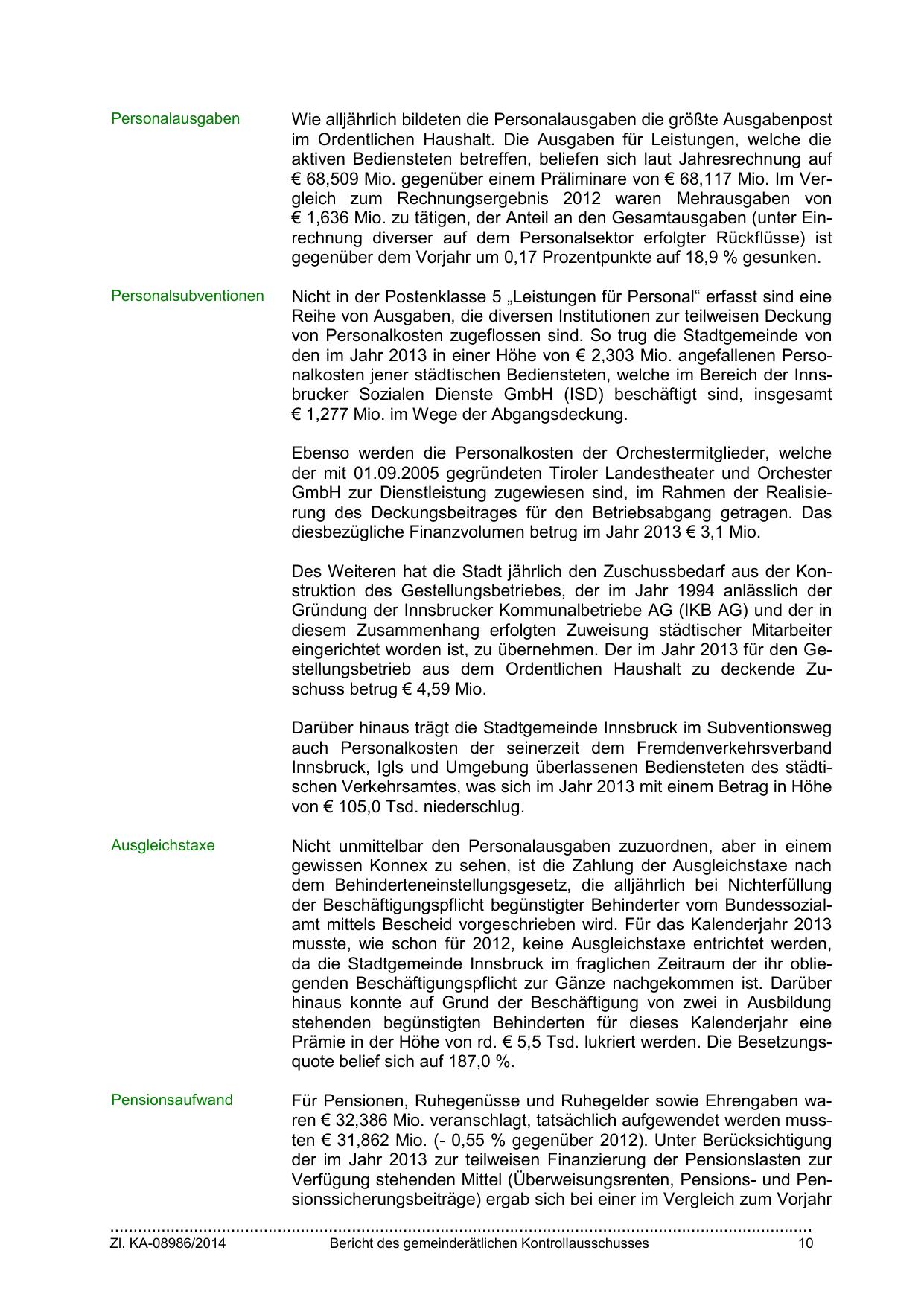 Innsbruck, Igls und Umgebung überlassenen Bediensteten des städtischen Verkehrsamtes, was sich im Jahr 2013 mit einem Betrag in Höhe