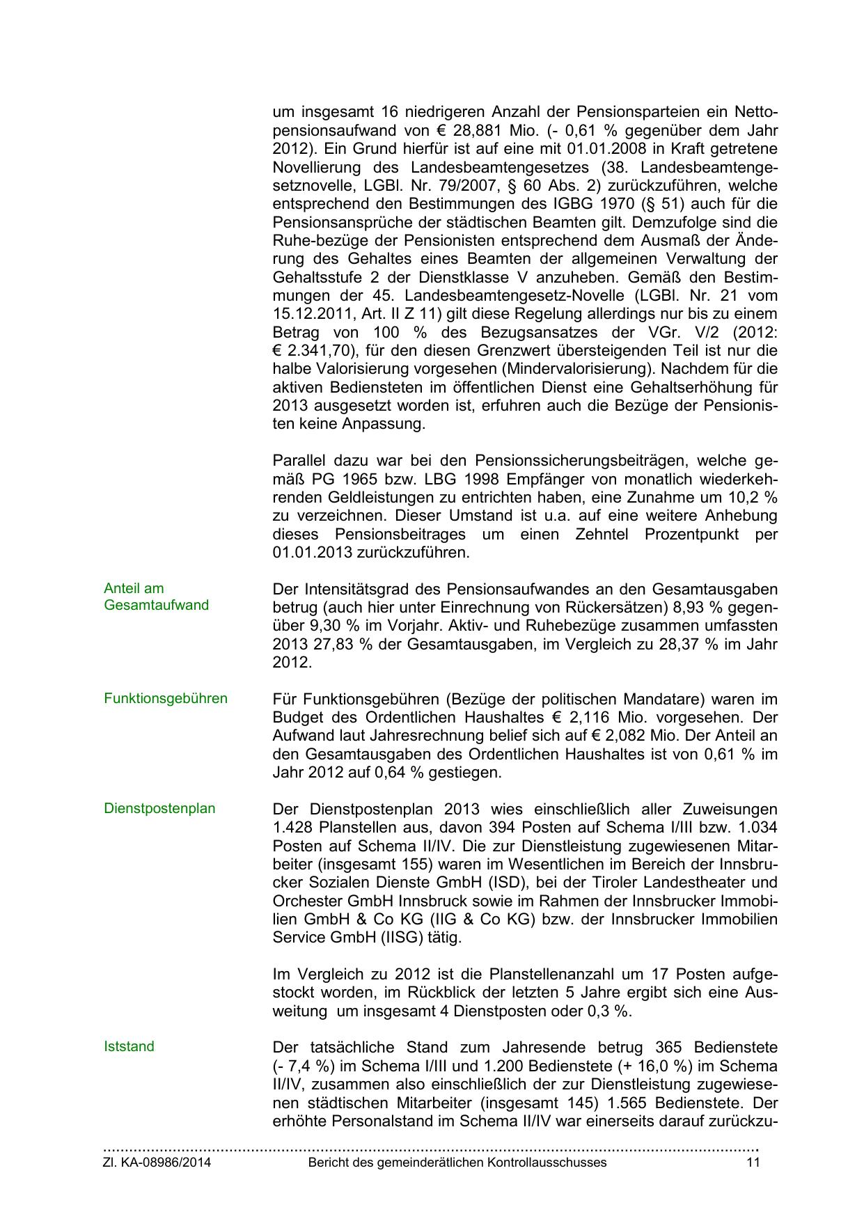(- 7,4 %) im Schema I/III und 1.200 Bedienstete (+ 16,0 %) im Schema