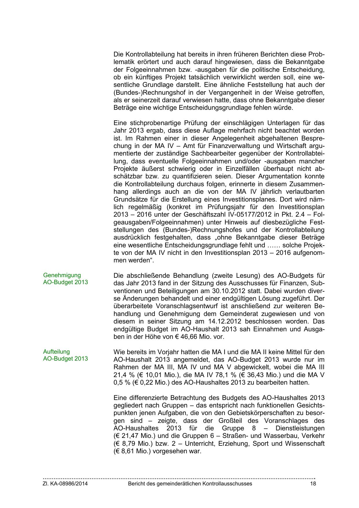 0,5 % (€ 0,22 Mio.) des AO-Haushaltes 2013 zu bearbeiten hatten.