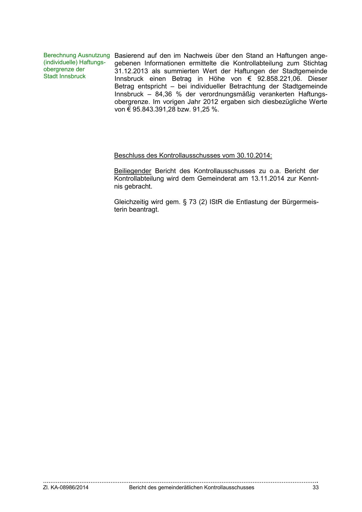 Innsbruck – 84,36 % der verordnungsmäßig verankerten Haftungsobergrenze. Im vorigen Jahr 2012 ergaben sich diesbezügliche Werte