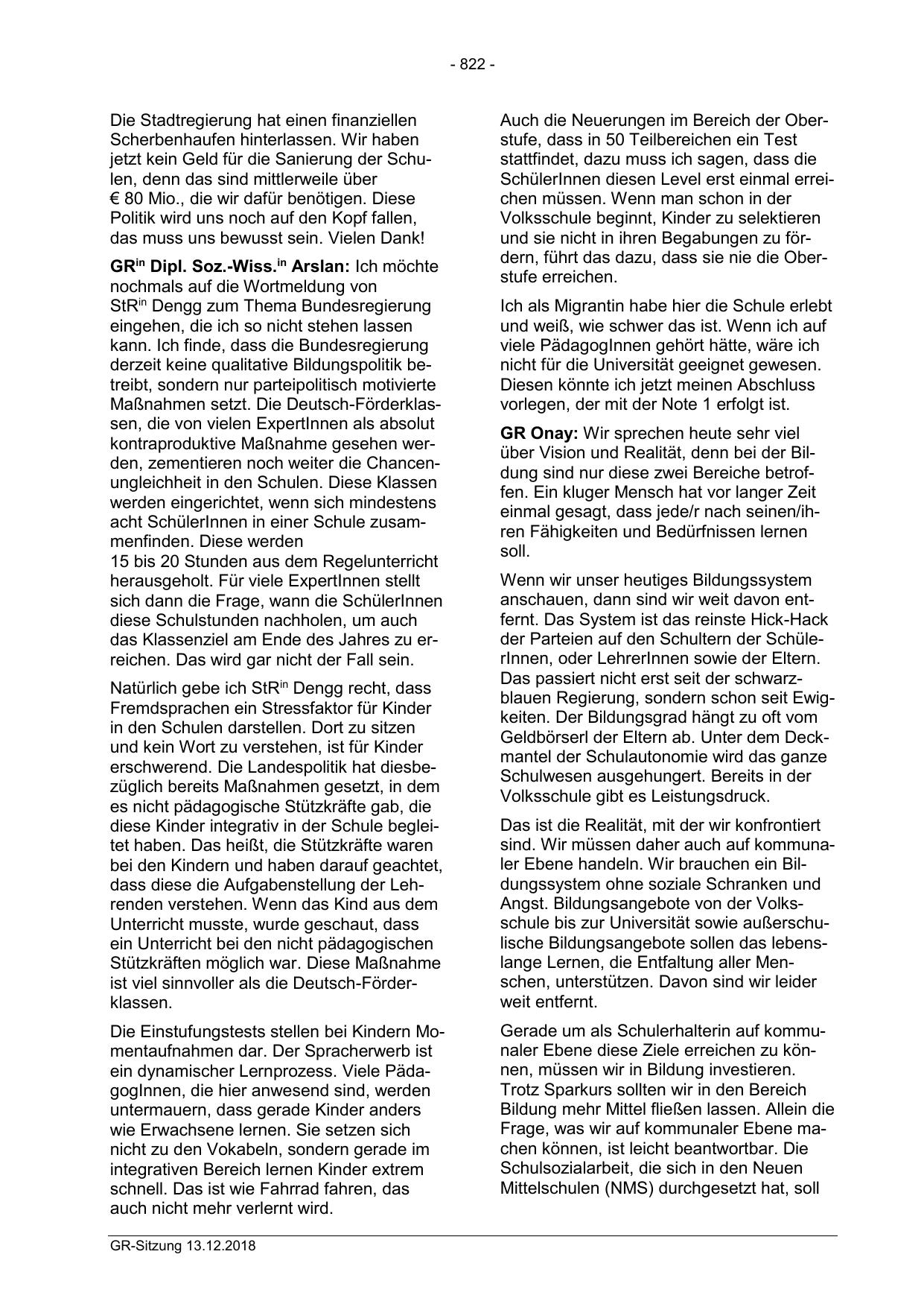 GRin Dipl. Soz.-Wiss.in Arslan: Ich möchte