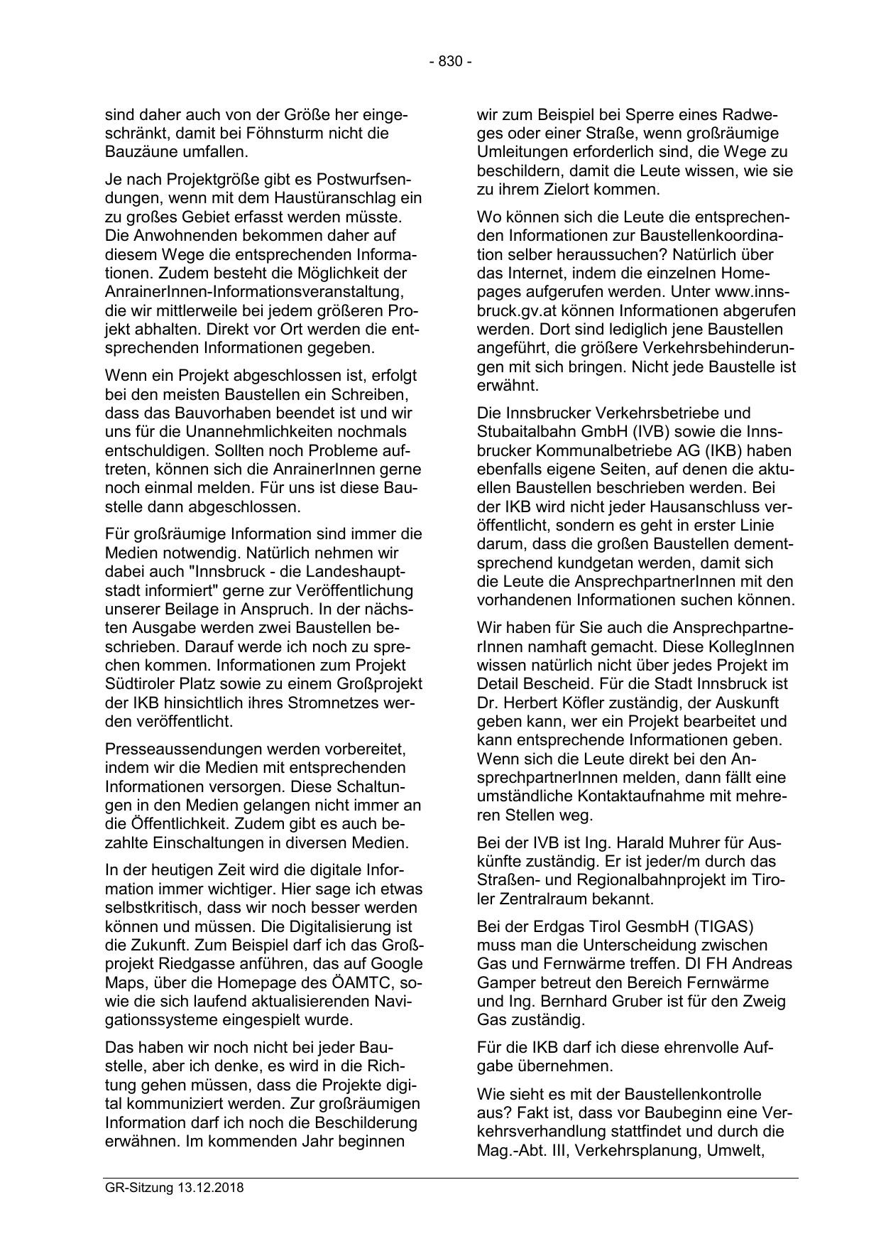 Detail Bescheid. Für die Stadt Innsbruck ist