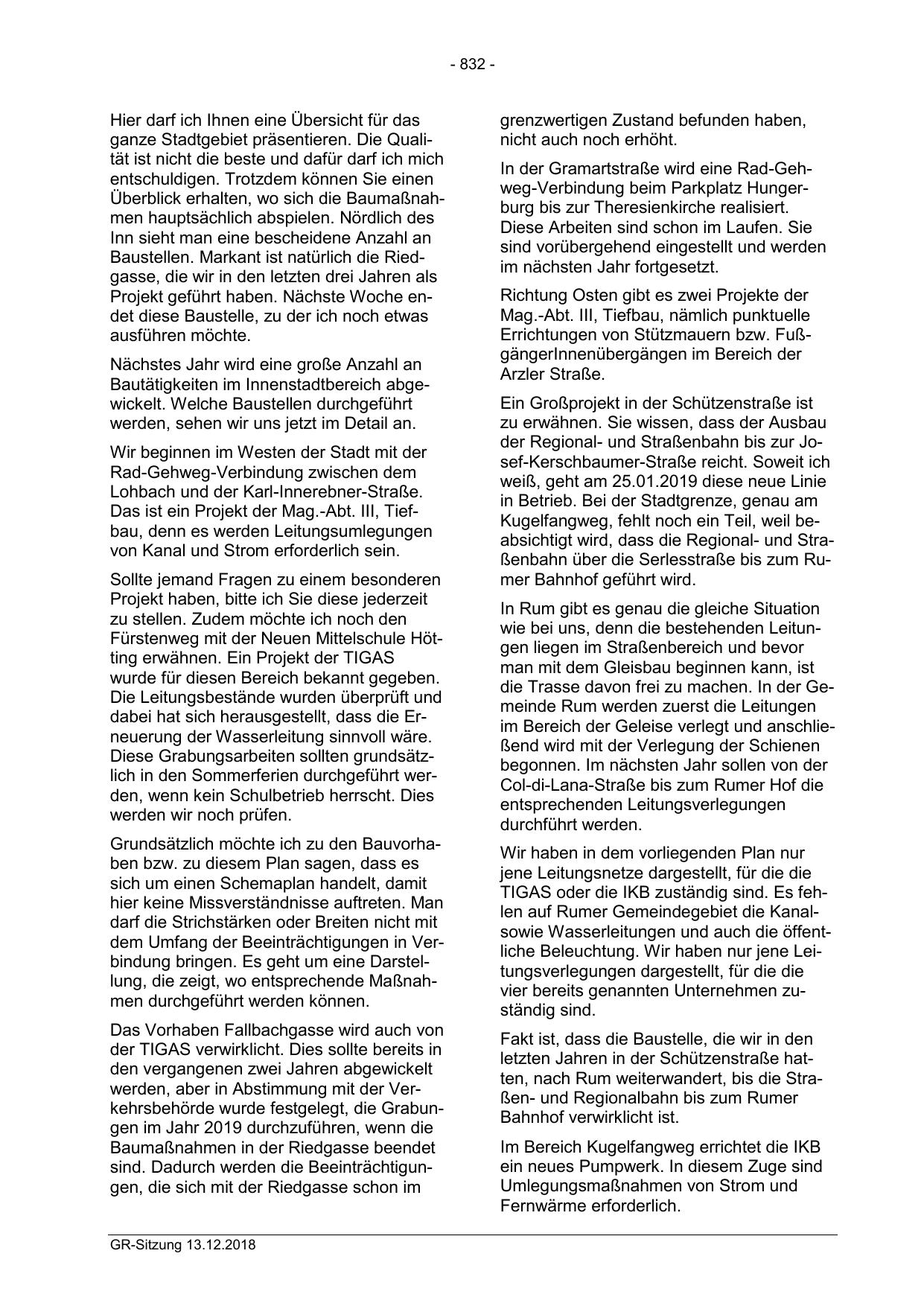 TIGAS oder die IKB zuständig sind. Es fehlen auf Rumer Gemeindegebiet die Kanalsowie Wasserleitungen und auch die öffentliche Beleuchtung. Wir haben nur jene Leitungsverlegungen dargestellt, für die die