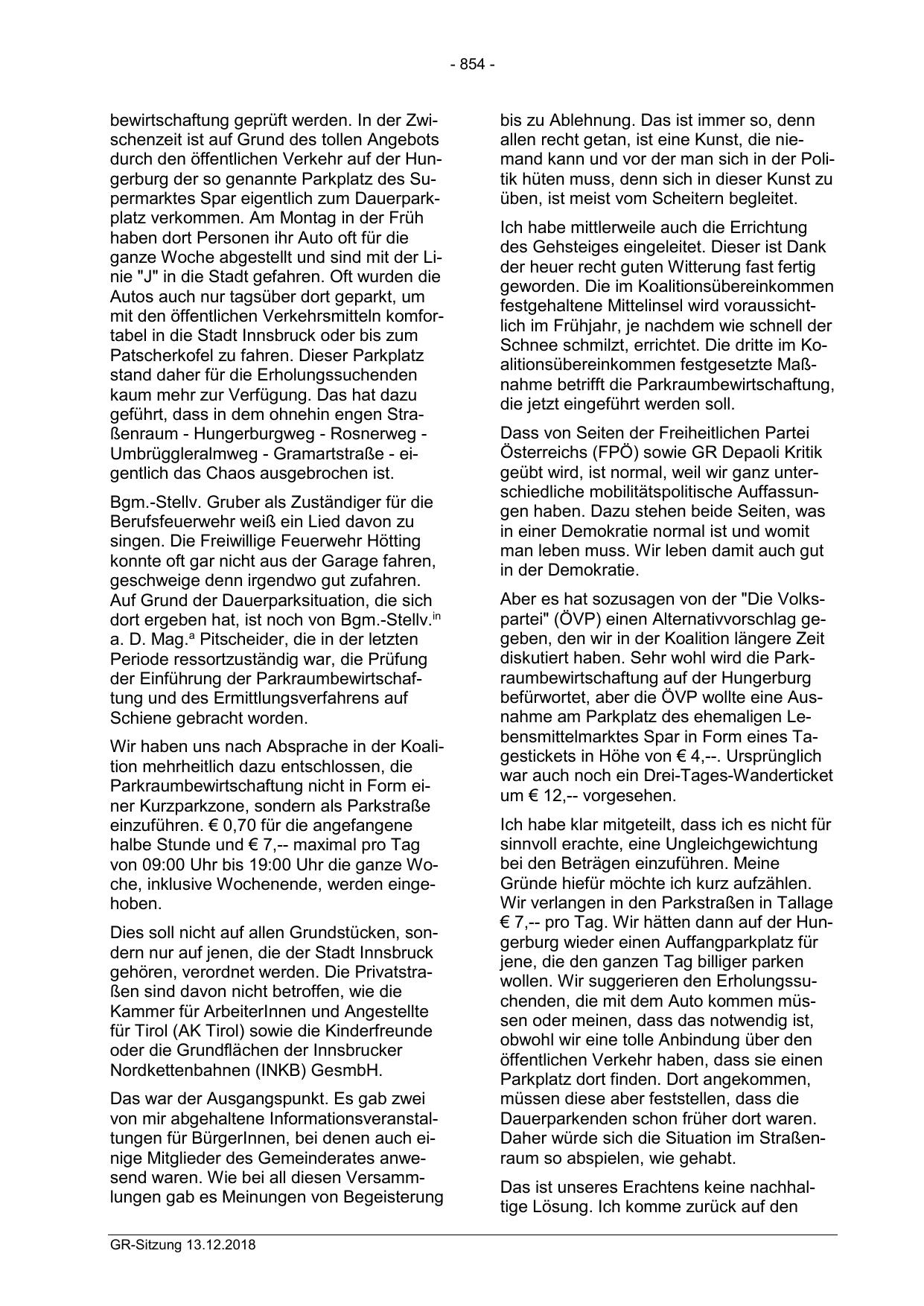 diskutiert haben. Sehr wohl wird die Parkraumbewirtschaftung auf der Hungerburg